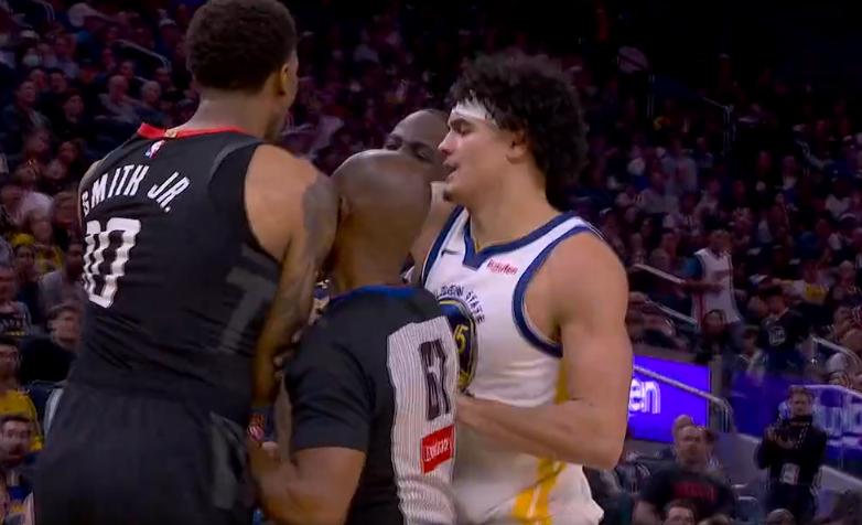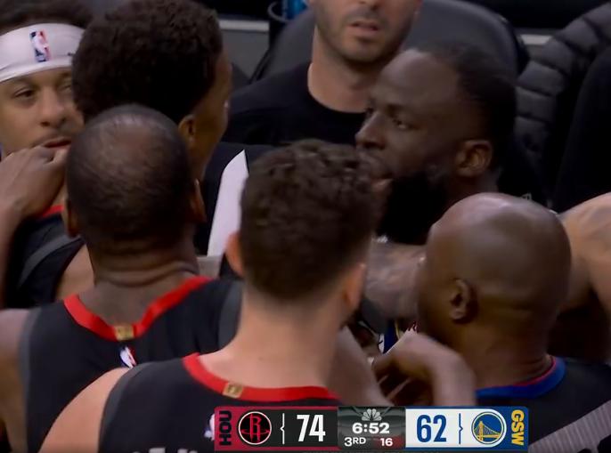 差点打起来!追梦又搞事了,拿球直接砸人,真脏! 今天勇士在主场对阵火箭。 比赛的第三节发生了非常不愉快的一幕,勇士追梦格林在边线附近拿球后快搂不住了,然后把球直接砸向了防守球员小贾巴里史密斯身上,而且还对着人家喋喋不休说着垃圾话。 小贾对此回应,二者从喷脏活上升到肢体语言,随后队友赶紧跑来拉开,这才避免了事态的进一步升级。 追梦这样完全没必要的,都知道人家小贾今天状态好,三分投的准,就故意搞你心态,破坏你情绪,再加上勇士现在落后,所以格林就又开始胡来搞事了。 库里今天回归,感觉追梦就是在场上刻意表现自己的强硬一样。你说砸人就砸人吧,你往人家腿上砸,你这倒好直接砸人家胸口,而且嘴里还不停的说着什么,小贾这么好脾气的人都被你惹得生气了。