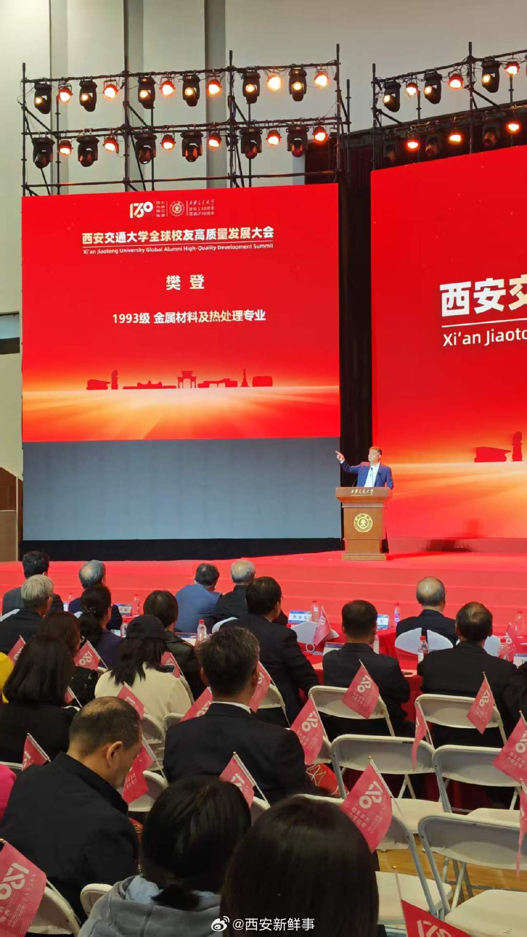 【樊登母校校庆现场落泪】西交大130周年校庆樊登泪洒现场 4月6日,陕西西安。西安交通大学130周年校庆活动现场,来自全球各地,跨越老、中、青、幼年四个年龄段的2500余名校友及在校人员同框相聚。从白发苍苍到稚气未脱,一代代交大人薪火相继,共赴这场百卅年的母校之约,为西交大庆生。