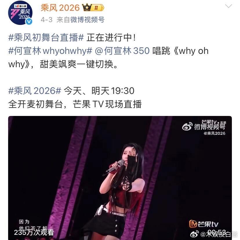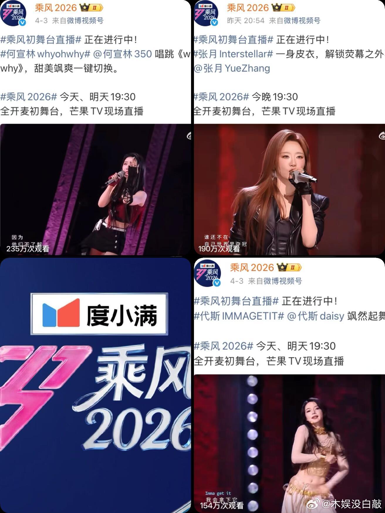 乘风2026|浪姐个人直拍破百万的有3️⃣人乘风2026wb官博播放量🈶何宣林:235W张月:190w代斯:154w