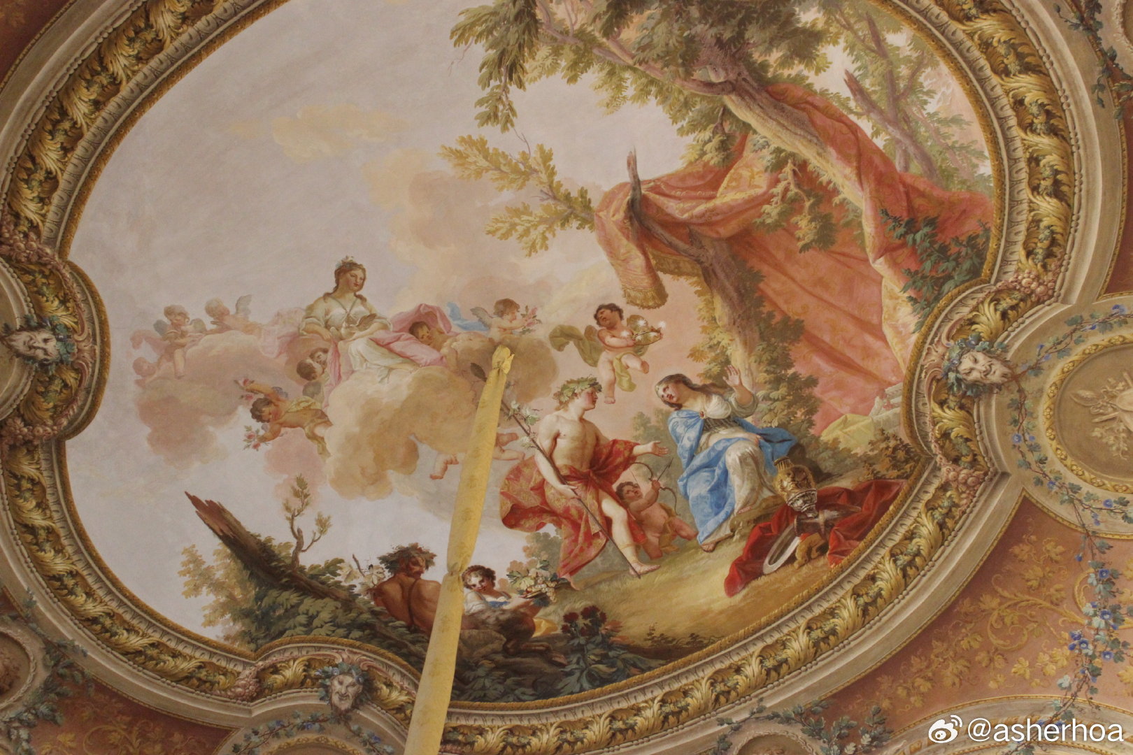 西洋历史文化鱼缸 意大利新古典主义画家Fedele Fischetti (1732 – 1792)为意大利那不勒斯王国卡塞塔王宫秋厅创作的壁画。