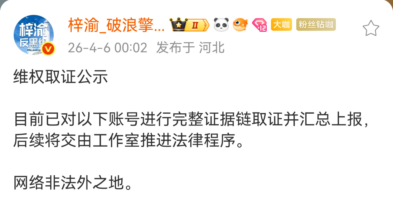 梓渝维权取证公示梓渝维权取证已完成,那些人谨言慎行,守护清朗空间!!!