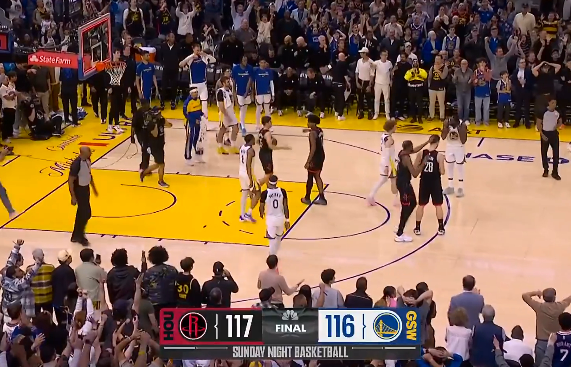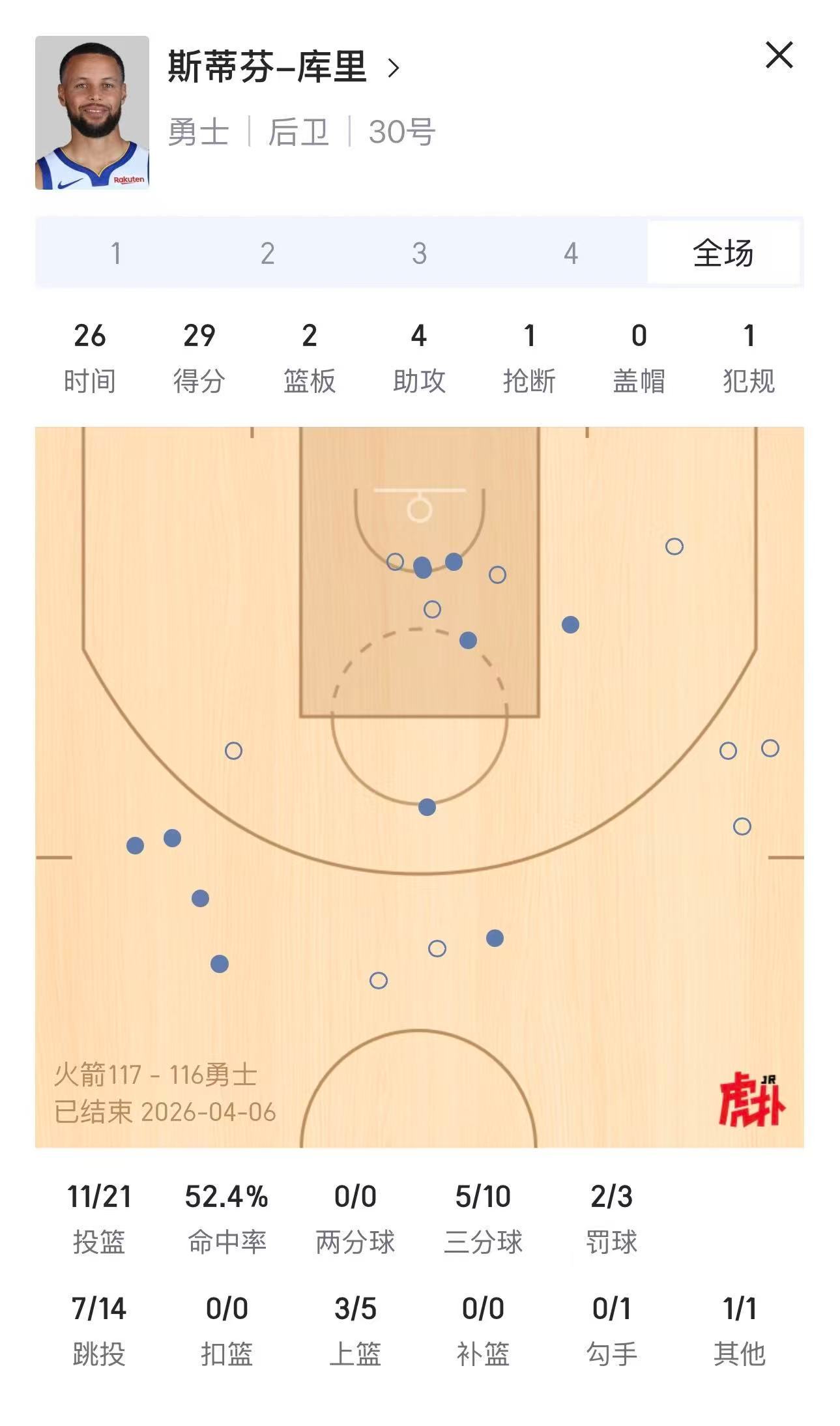 库里错失三分绝杀,勇士116-117负于火箭,火箭6连胜。