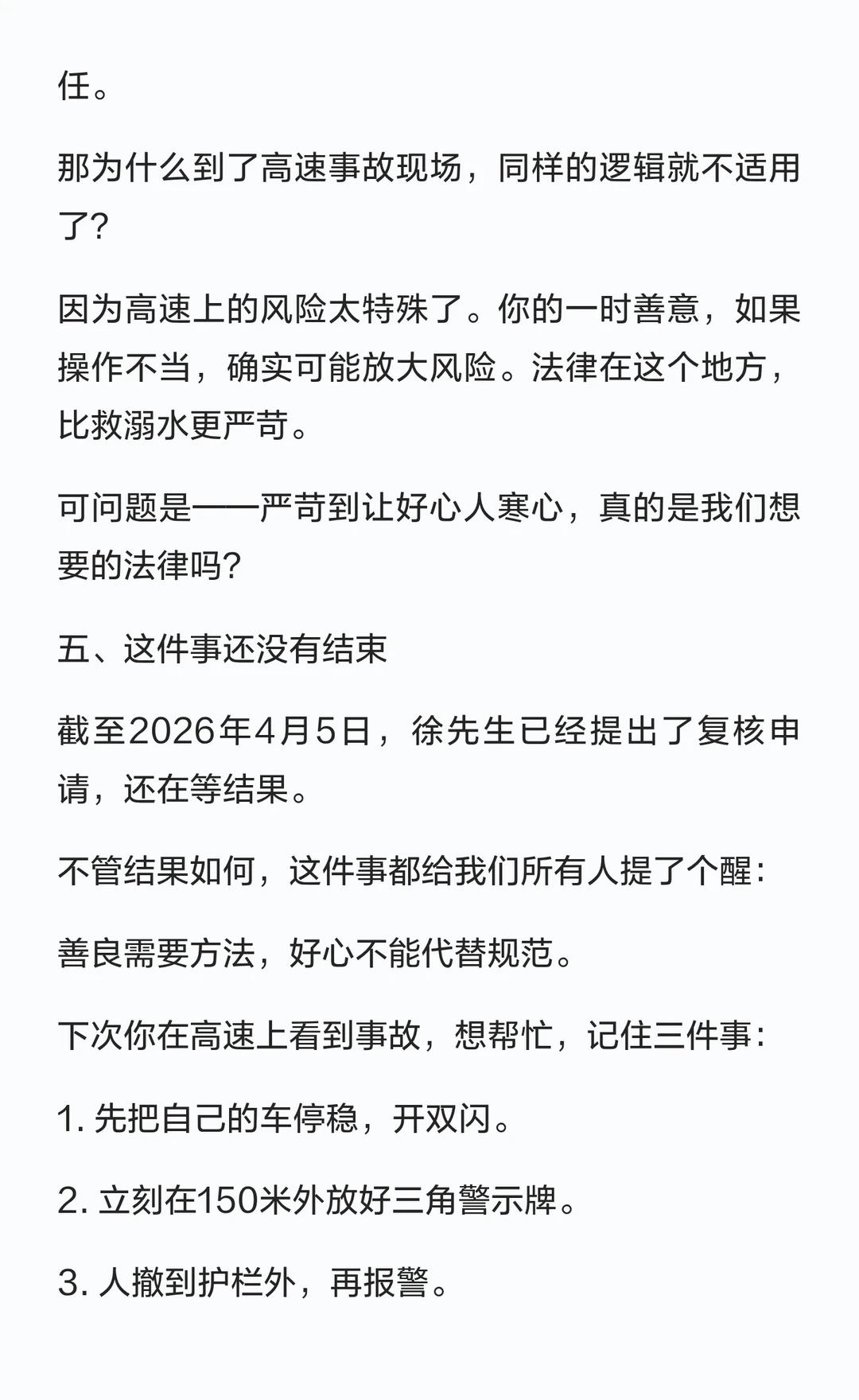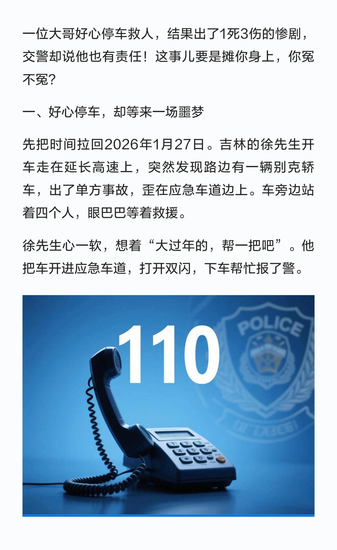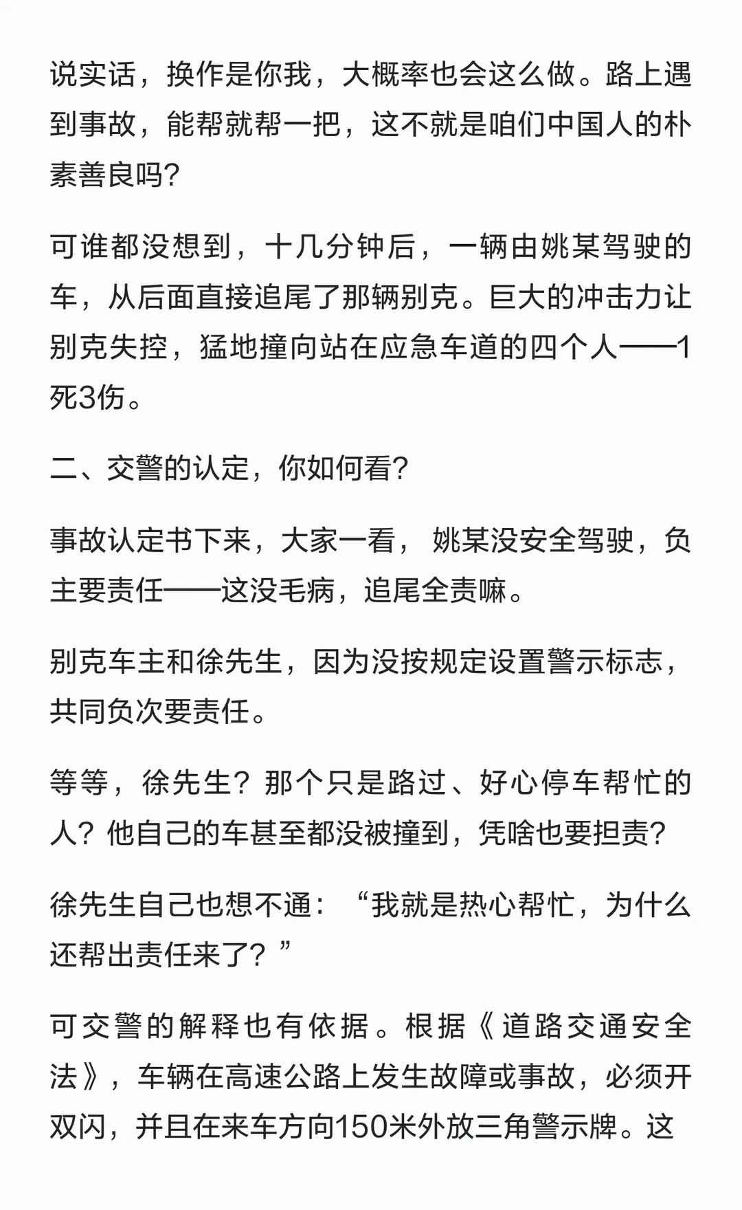 男子高速救人发生二次事故被定次责 一位大哥好心停车救人,结果出了1死3伤的惨剧,交警却说他也有责任!这事儿要是摊你身上,你冤不冤?