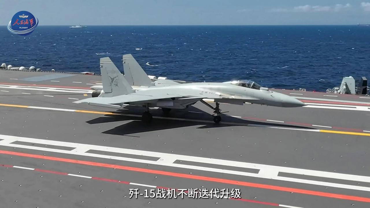 J-15T 15号机停在CV18“福建”号航母甲板上,背景中可见KJ-600 10号机。