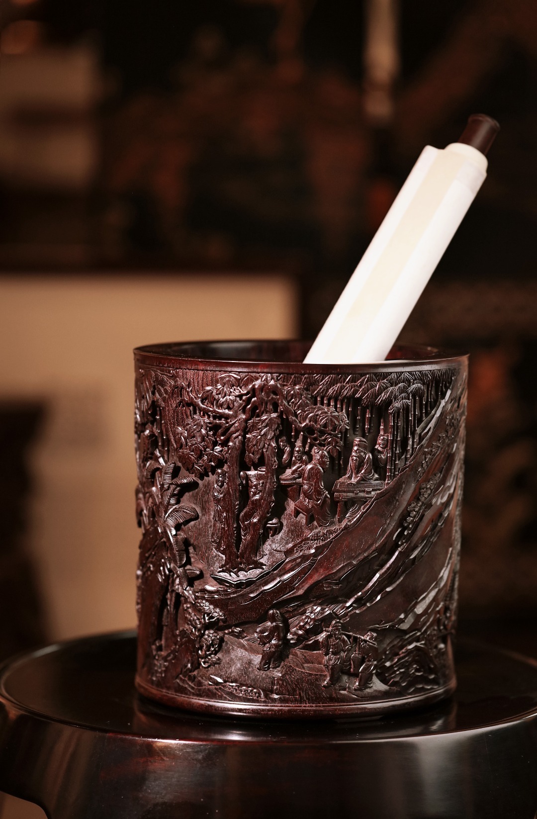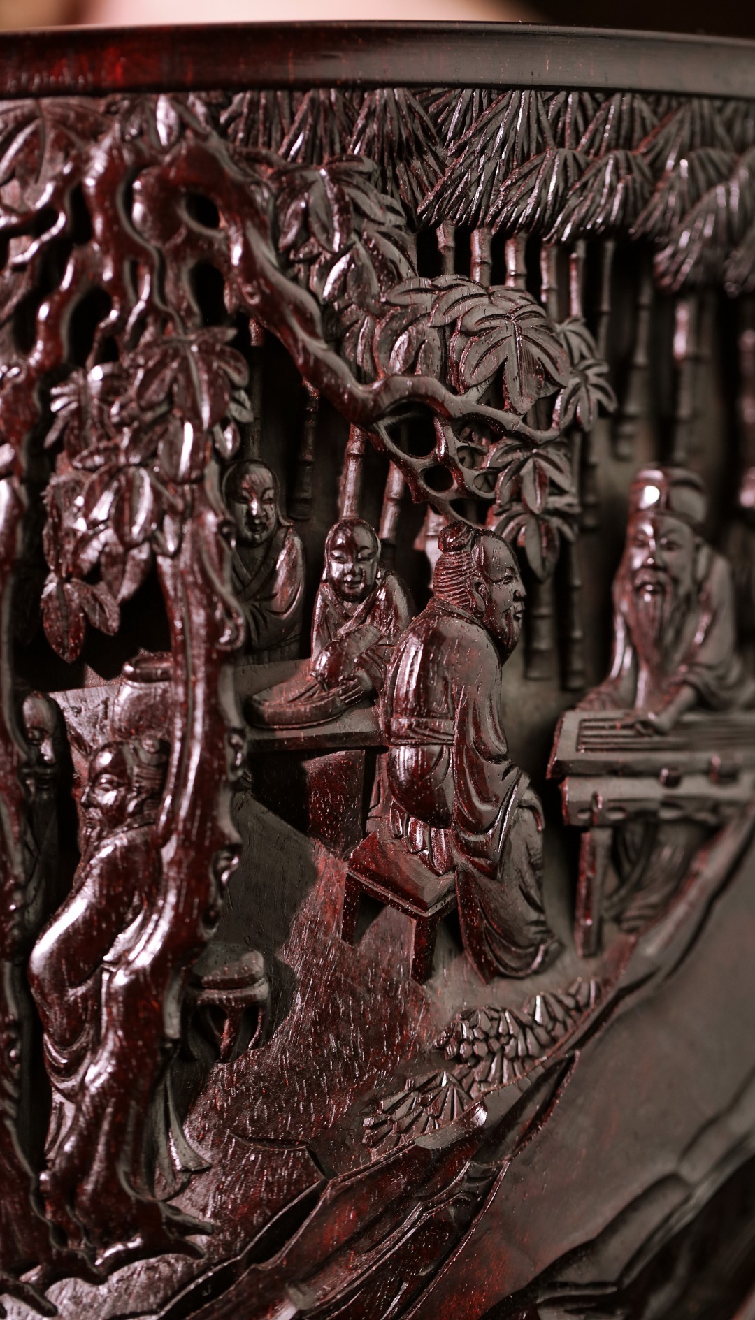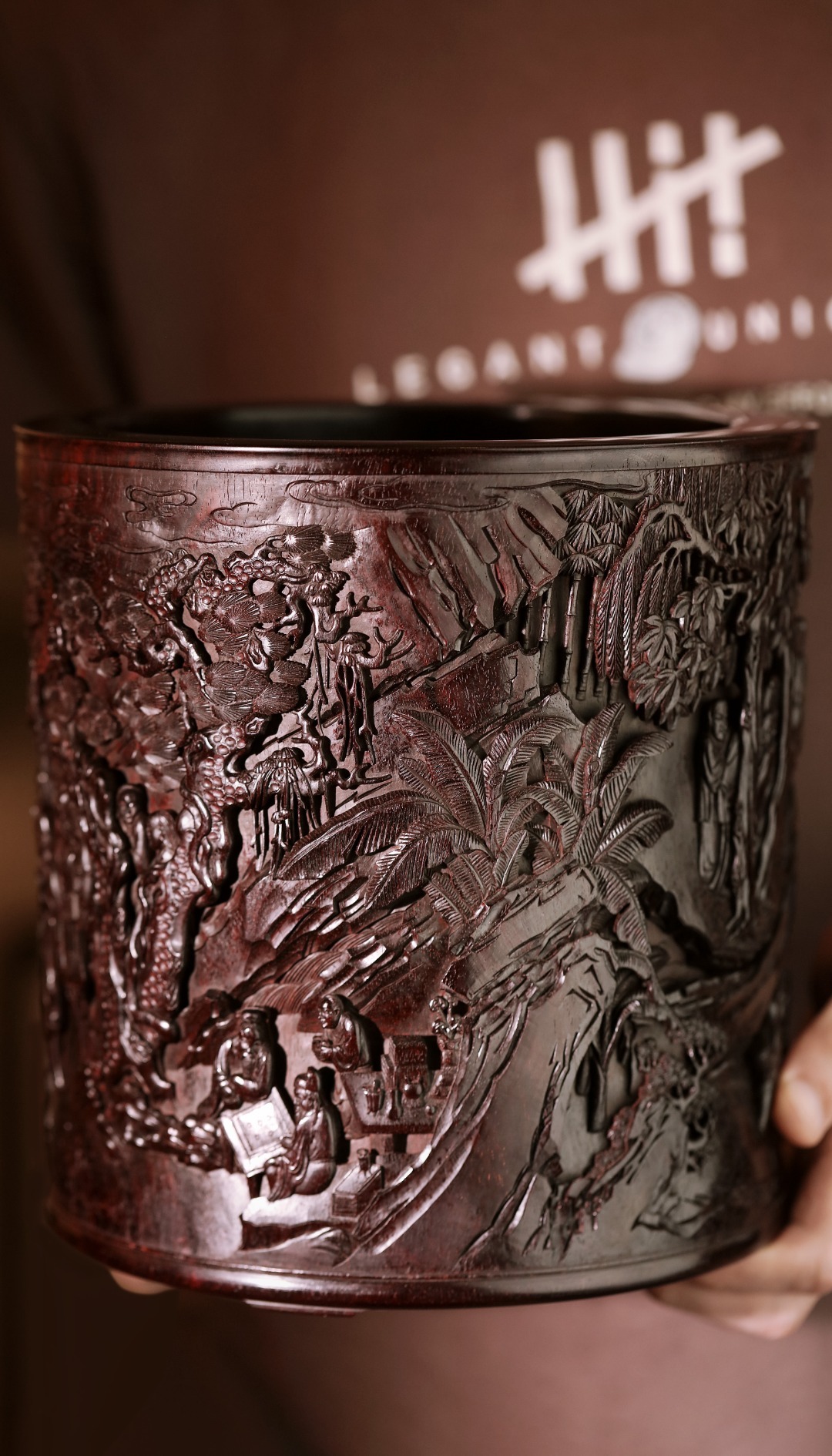 重器‼️小叶紫檀 | 西园雅集 超大笔筒