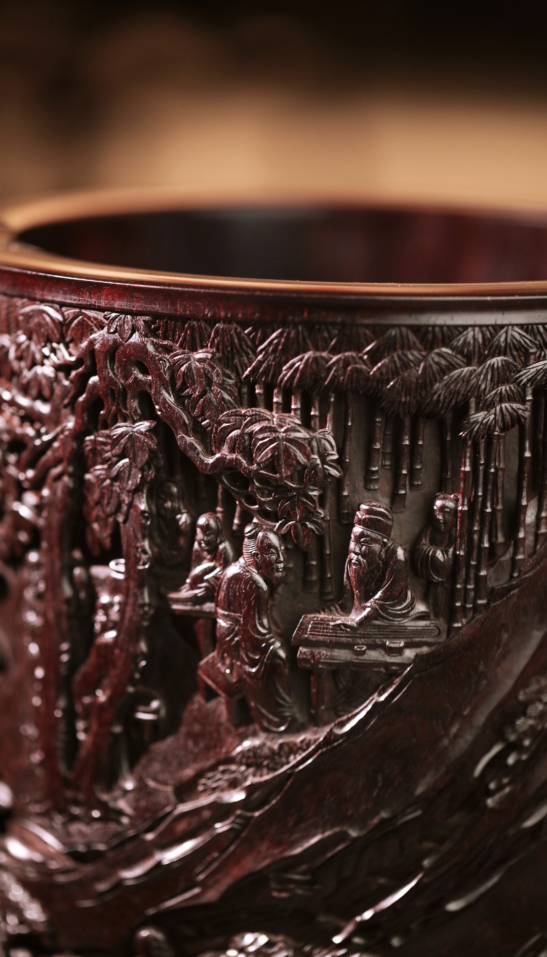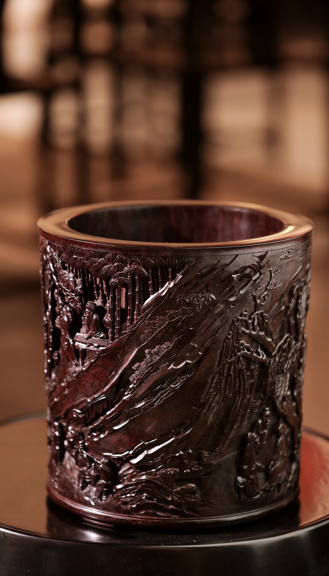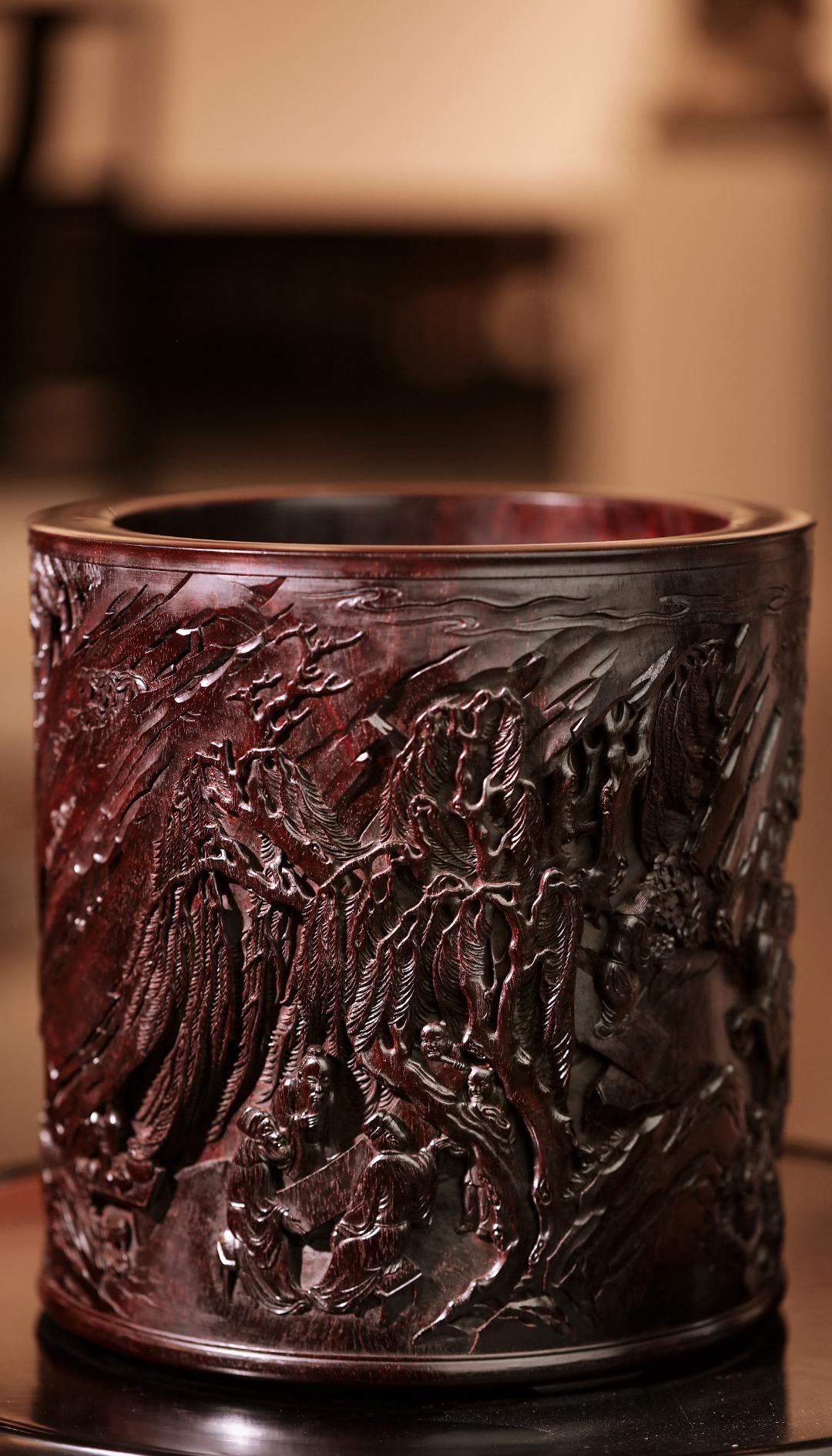 重器‼️小叶紫檀 | 西园雅集 超大笔筒