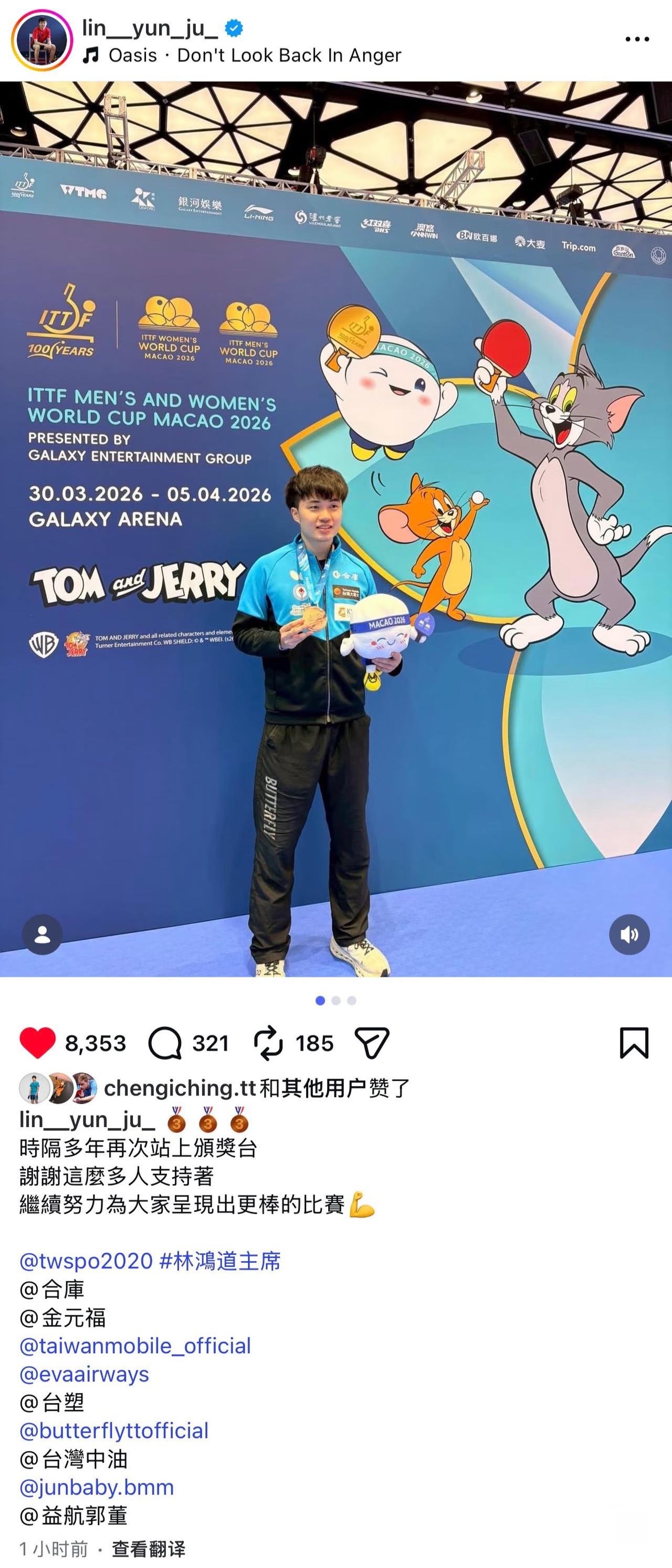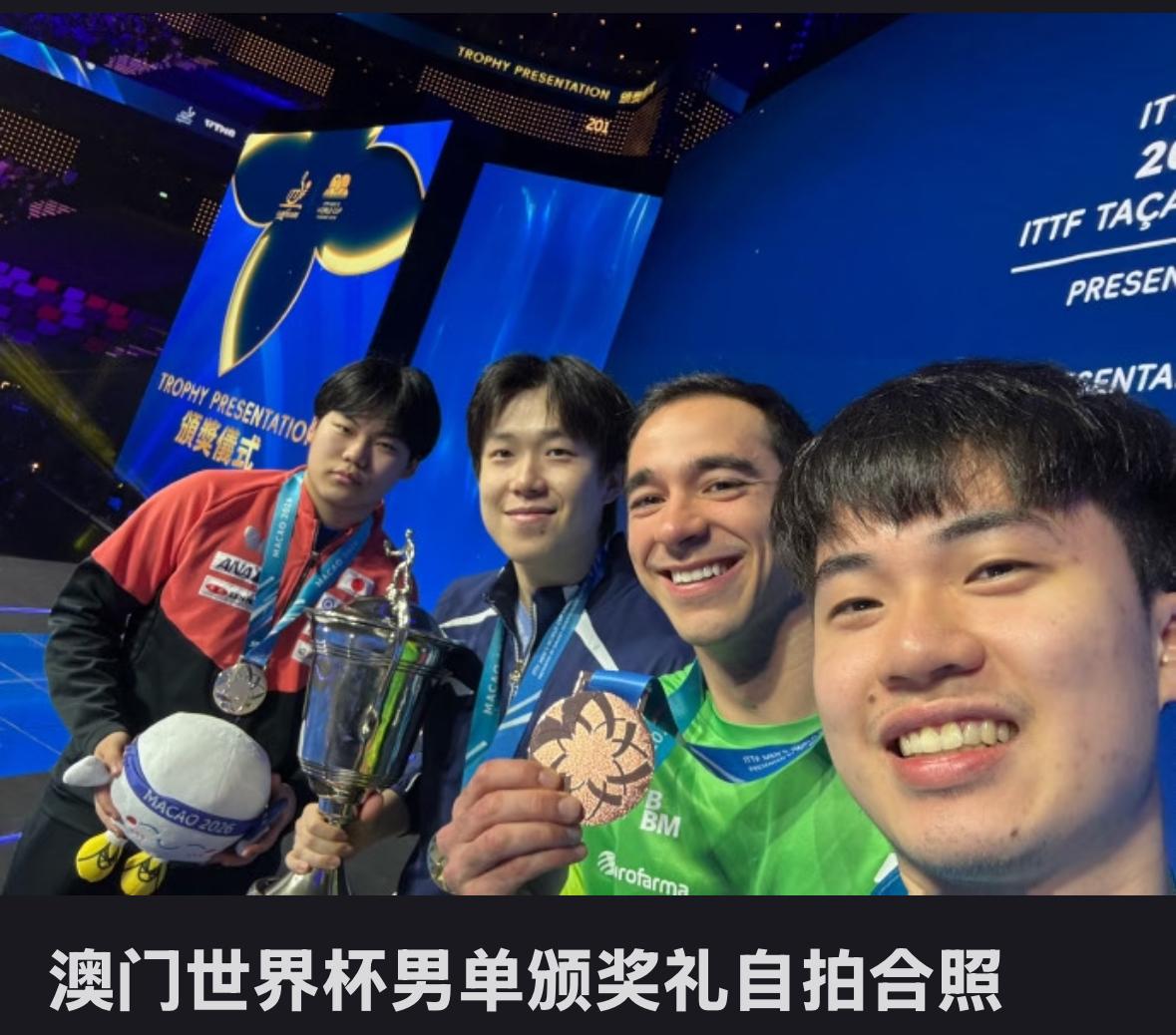 林昀儒更新,总结自己的澳门世界杯: 时隔多年, 再次站上领奖台, 谢谢这么多支持者, 继续努力💪, 为大家呈现出更棒的比赛! 林昀儒自拍又在搞怪🤪, 咋不把自己截全, 特别萌,恭喜林昀儒夺得铜牌! 林昀儒在这次世界杯表现出色, 涨球很多, 也就是说,2026年林昀儒 状态都很好, 开年的多哈冠军赛冠军🏆, 使林昀儒更自信! 如果不是半决赛遇到 状态爆棚的松岛辉空, 估计林昀儒的奖牌还换颜色……