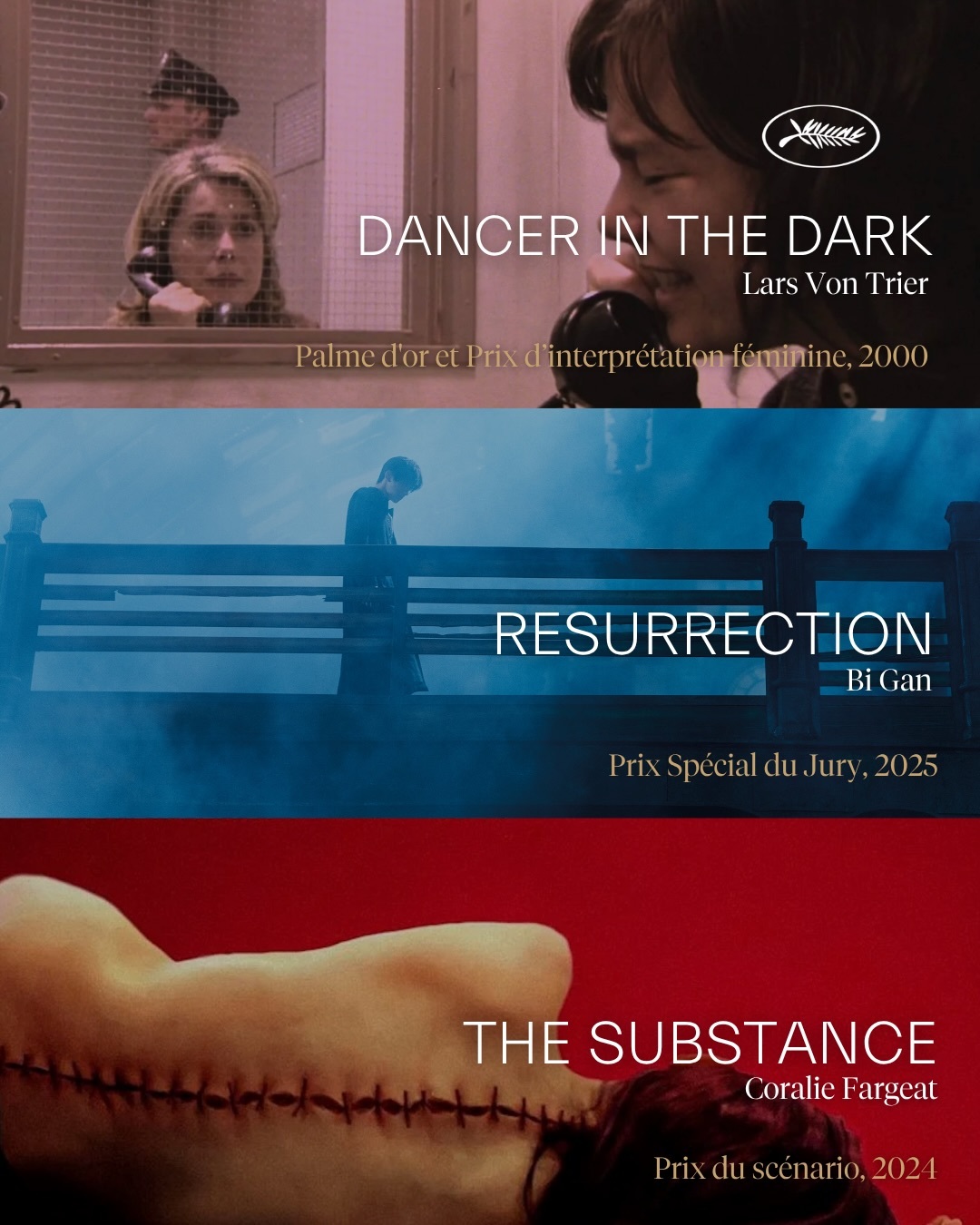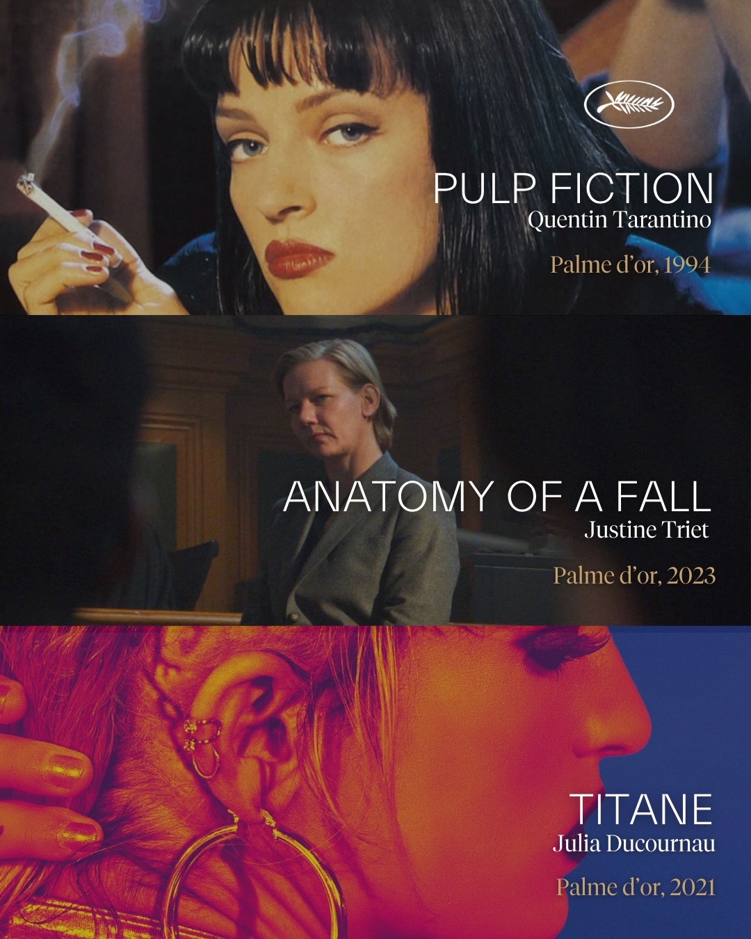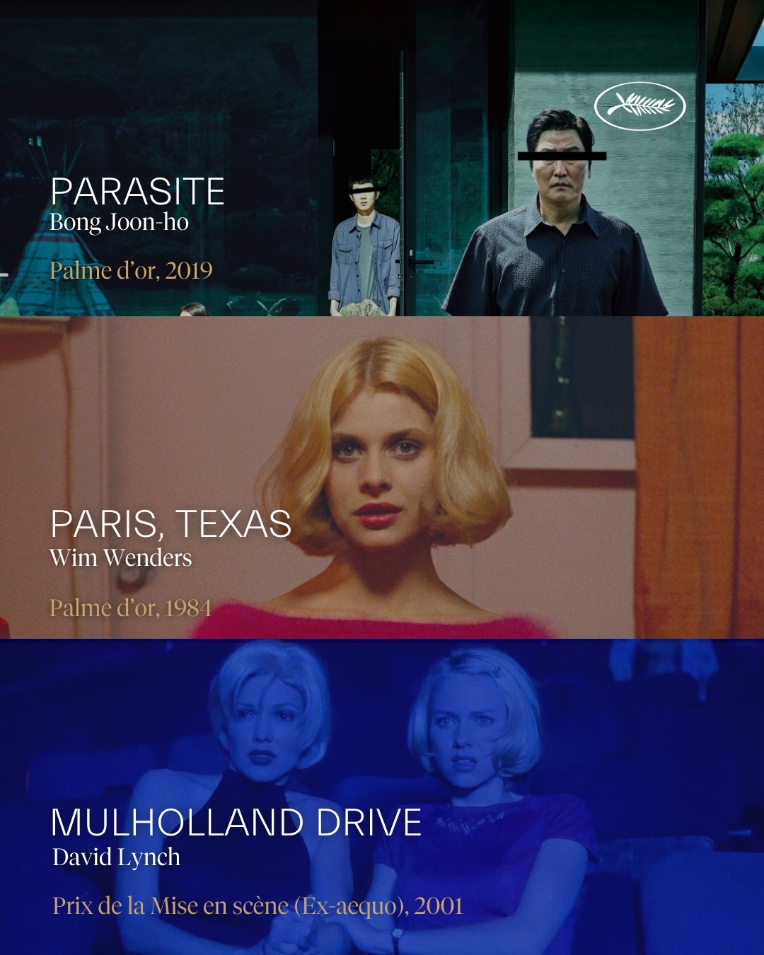 《寄生虫》奉俊昊《德州巴黎》维姆·文德斯《穆赫兰道》大卫·林奇《黑暗中的舞者》拉斯·冯·提尔《狂野时代》毕赣《某种物质》科拉莉·法尔雅《利益区域》乔纳森·格雷泽《水之年代》克里斯汀·斯图尔特《接近终点》奥利维尔·拉克谢《低俗小说》昆汀·塔伦蒂诺《坠落的审判》茹斯汀·特里耶《钛》朱利亚·迪库诺