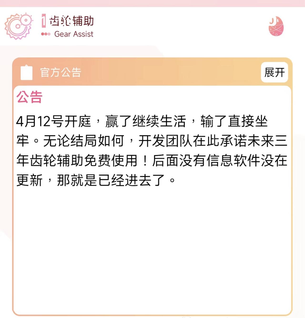 齿轮辅助的作者告诉我们,他被佛山法院起诉了,罪名是非法控制计算机罪。他也问了律师,这一次大概要判三年。所以他就决定加软件提前。进行公布,然后免费给大家使用三年。这三年他也找了朋友帮忙运营。 这个作者才20多岁,还那么年轻,结果没想到却触碰了法律的底线。但不得不说这种辅助的话其实很容易触犯底线的,包括不少游戏公司都在打击,都在抵制。所以有作者制作这种辅助的话,并且是收费形式的,那更应该去找律师了解一下,看你这种行为会不会触犯法律。