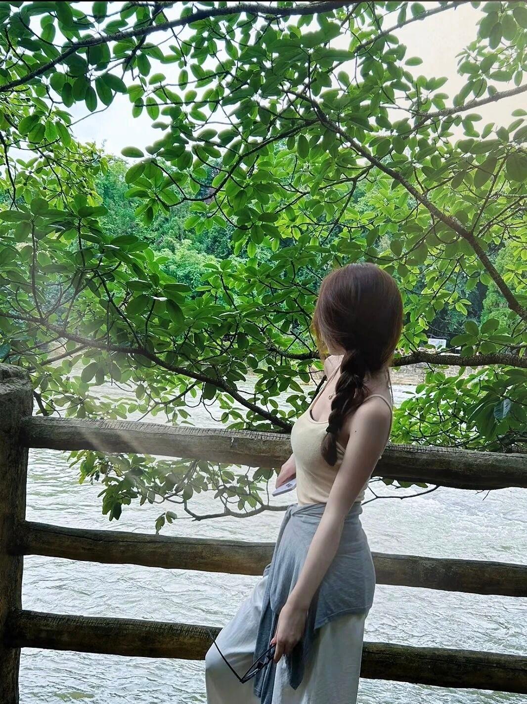 夏日午后,绿意盎然,长发飘逸,静享自然之美。