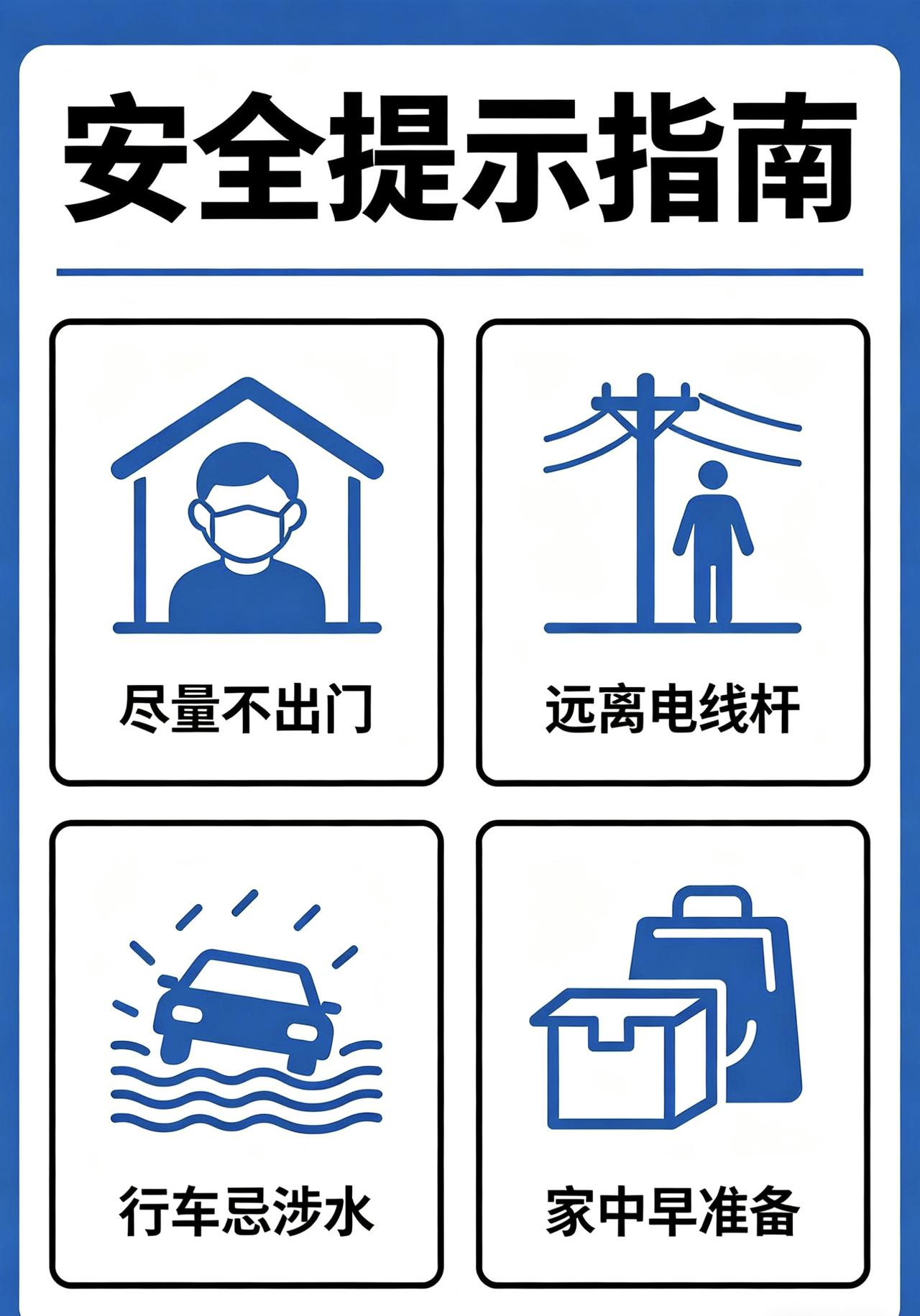 暴雨天安全指南,暴雨来袭别慌张,记住这几条能保命! 尽量不出门:非必要不外出,尤其避开低洼地带、地下通道。若已在户外,迅速向高处转移。 远离危险源:避开电线杆、变压器,防止触电;不靠近围墙、广告牌,警惕倒塌风险。 行车要谨慎:遇积水路段先观察,水深超轮胎一半勿强行通过。若车辆熄火,立即弃车撤离。 家中早准备:低楼层住户可用挡水板、沙袋防护;提前给手机、充电宝充满电,备好饮用水。 特别提醒:收到暴雨红色预警时,立即寻找坚固建筑躲避,等待救援期间保持通讯畅通。安全第一,财产第二! 暴雨天气 暴雨中求助 夏季暴雨多发季 (转发提醒身边人,雨天平安最重要)