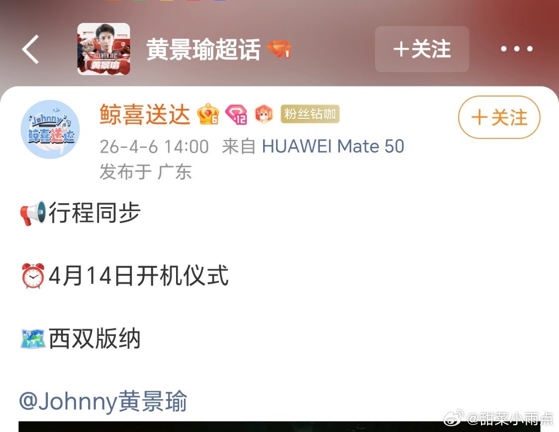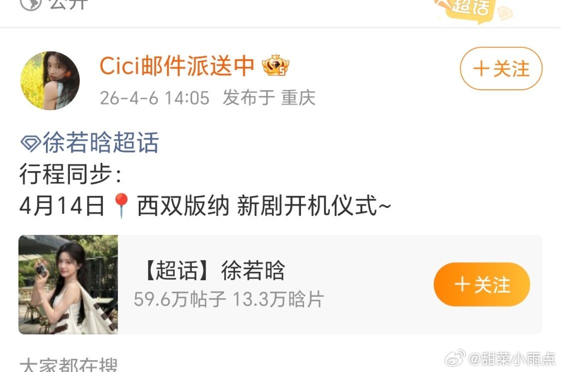 黄景瑜 徐若晗都发西双版纳开机行程看来《明川有知夏》女主真的换成徐若晗了金晨和徐若晗,大家觉得谁跟🐳更搭一点?