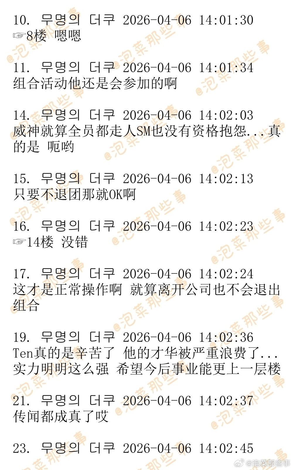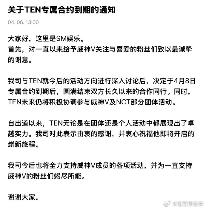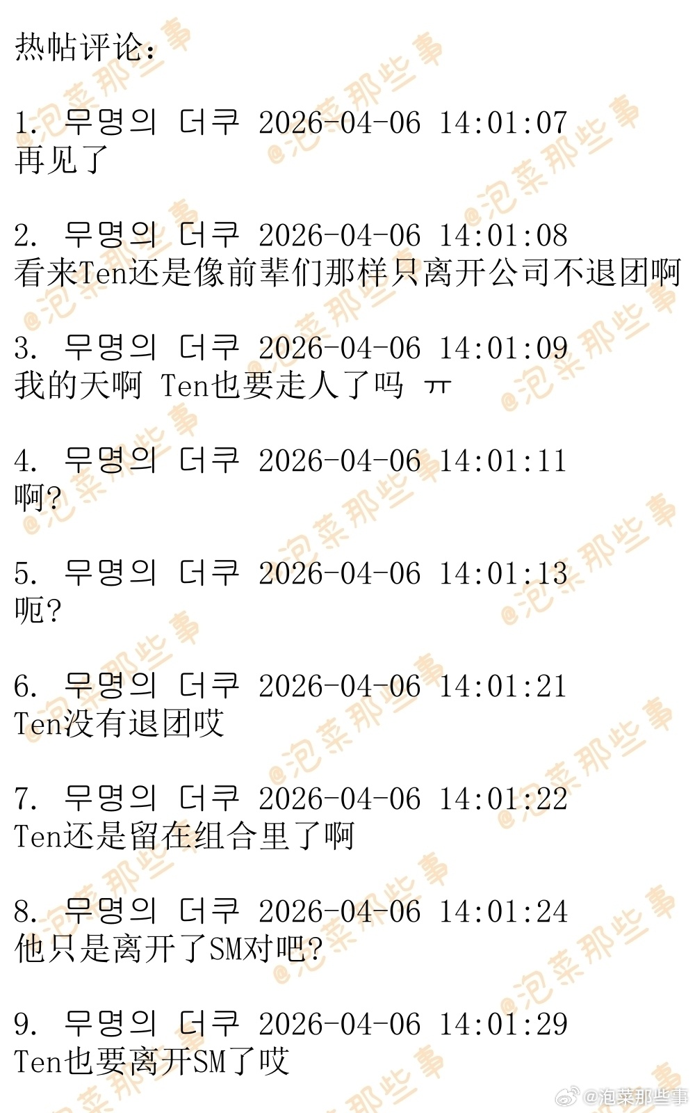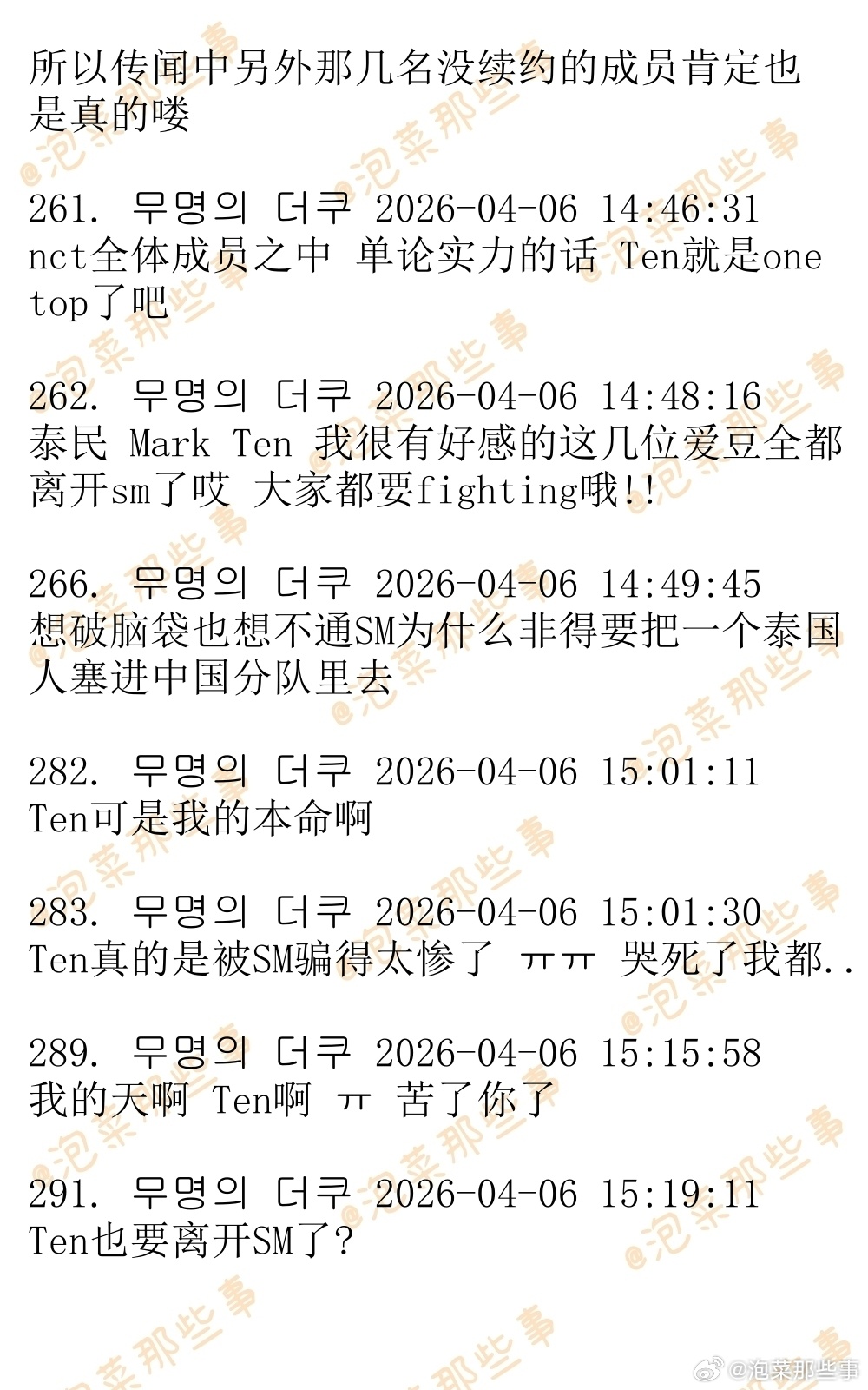 🔥韩网热帖评论翻译🔥TEN李永钦不续约Ten(李永钦)与SM娱乐的专属合约于今日到期后不再续约,但是他将继续以成员身份参与NCT及威神V团体活动。cr.theqoo