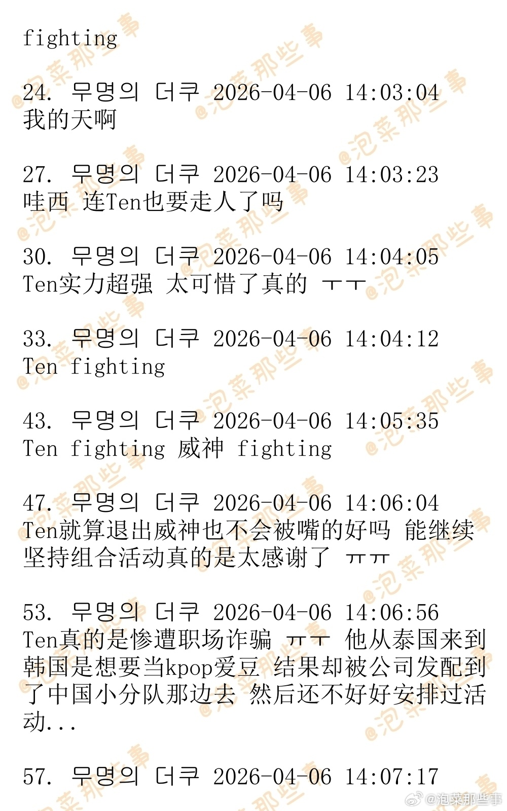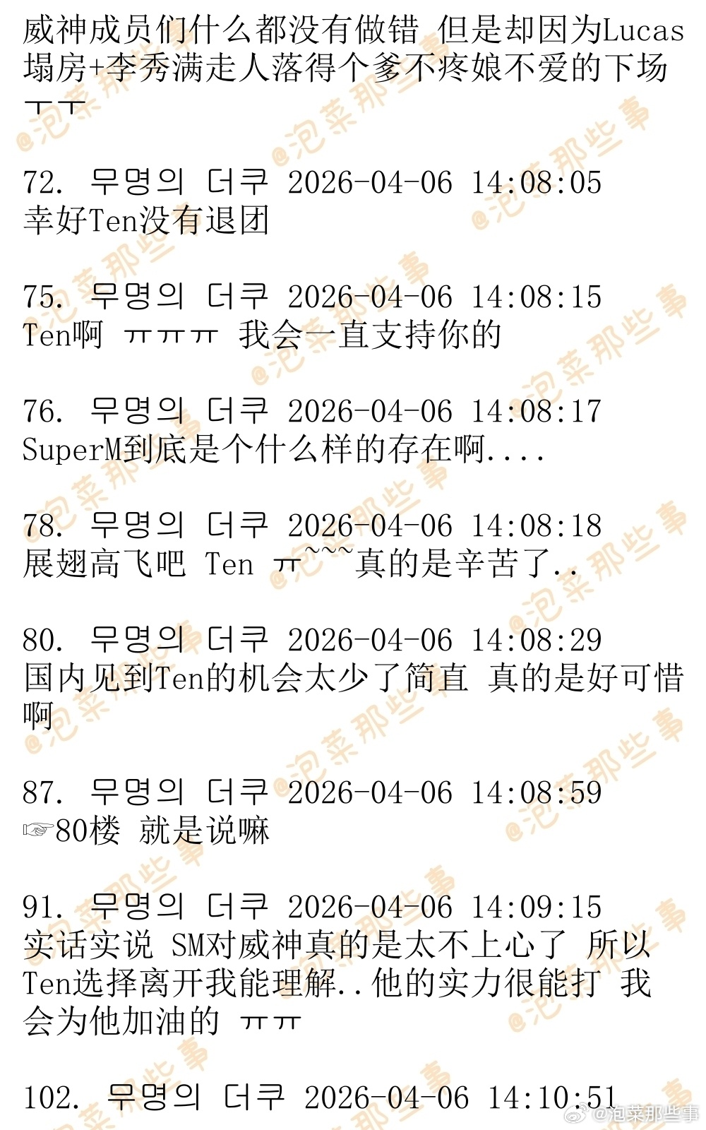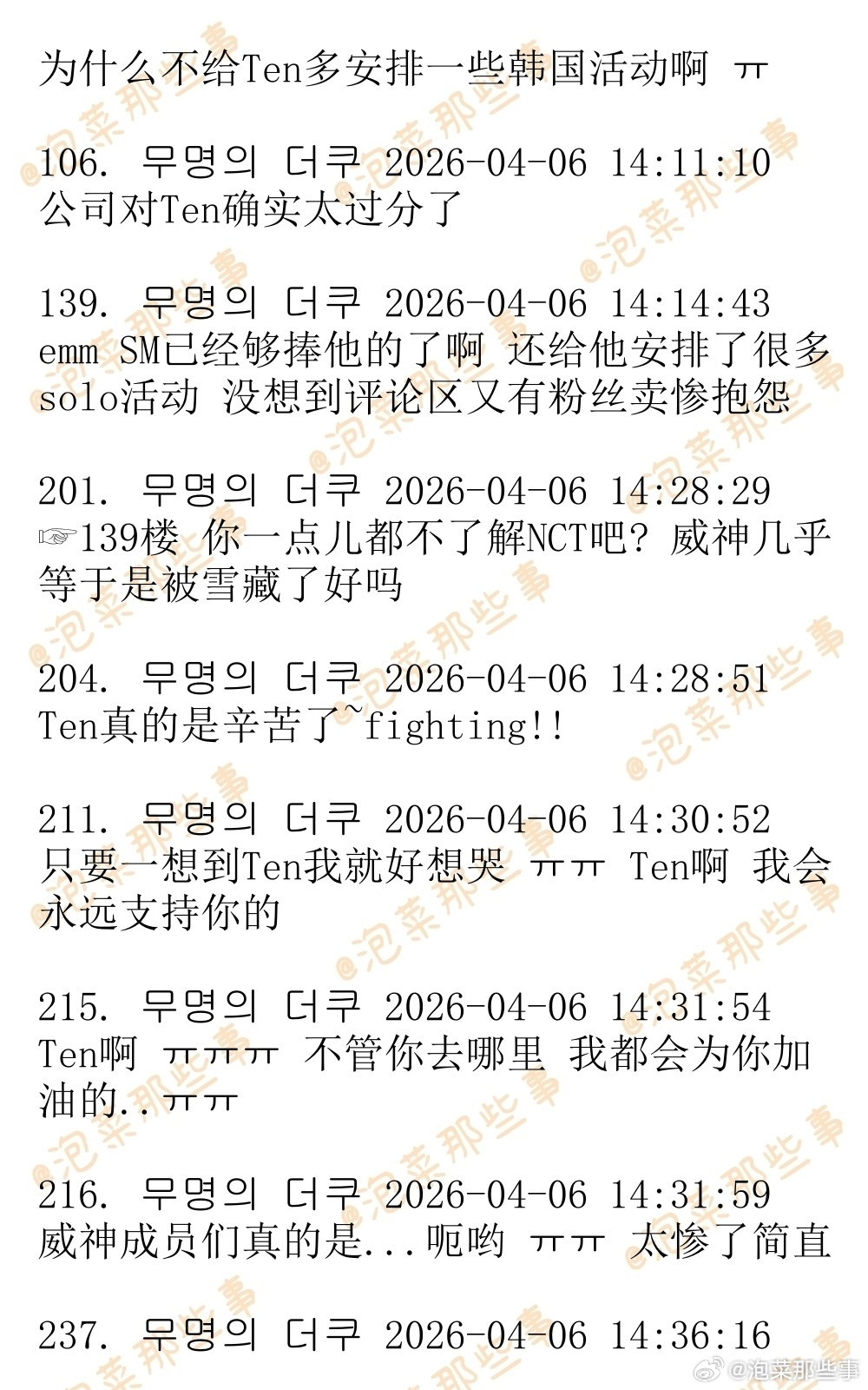 🔥韩网热帖评论翻译🔥TEN李永钦不续约Ten(李永钦)与SM娱乐的专属合约于今日到期后不再续约,但是他将继续以成员身份参与NCT及威神V团体活动。cr.theqoo