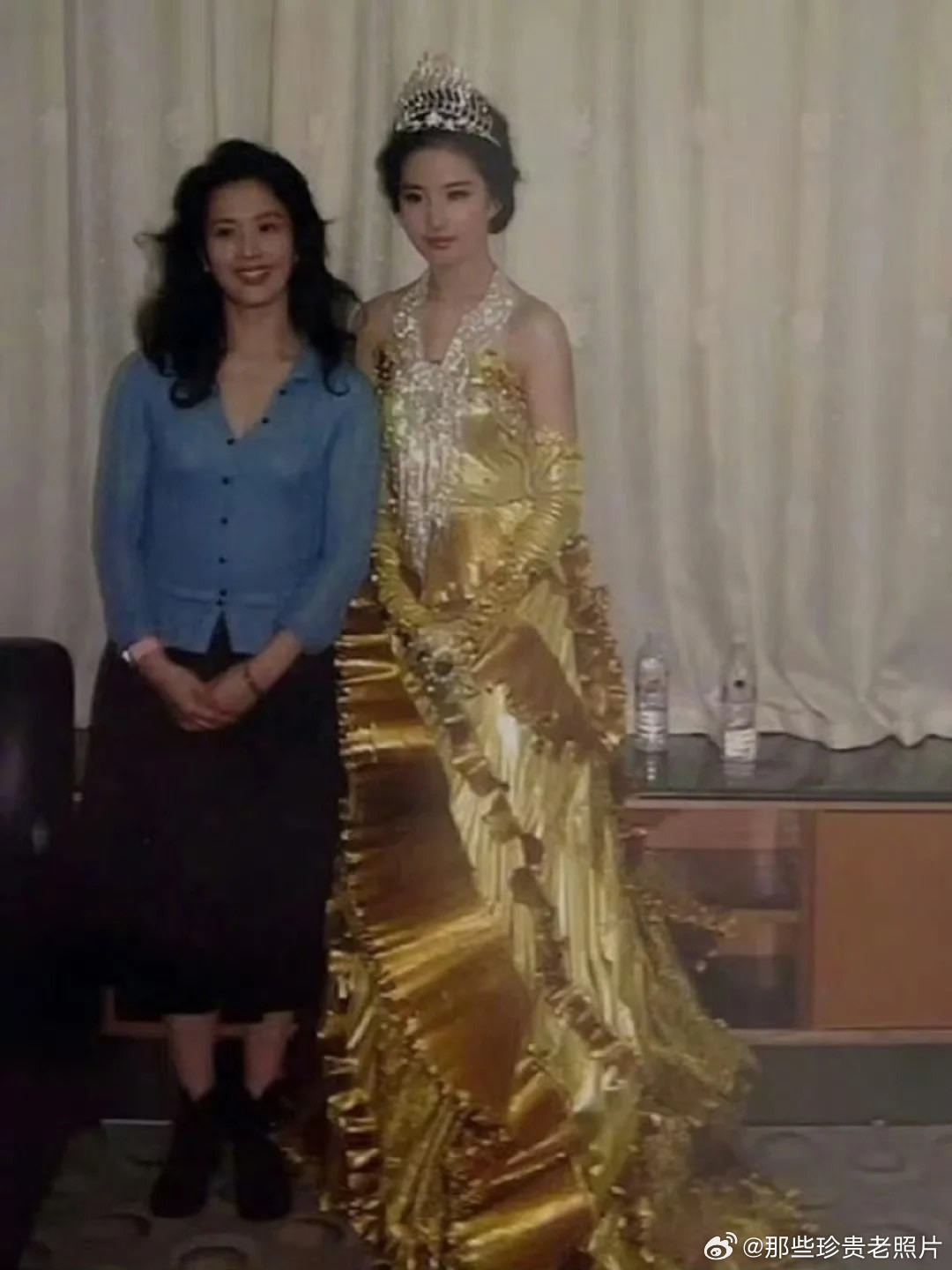 迪丽热巴看着刘亦菲的眼神像个小粉丝儿,眼神里全是欣赏,直盯着刘亦菲看,眼神都快拉