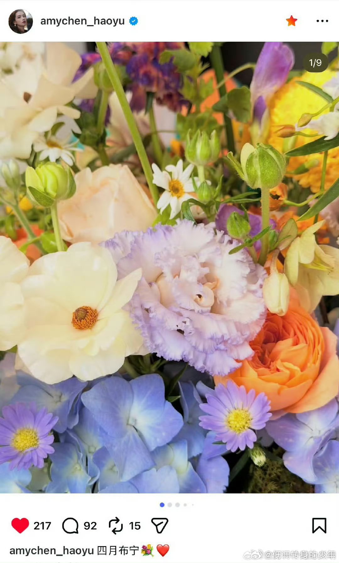 陈昊宇ins更新:四月布宁💐❤️分享生活美好