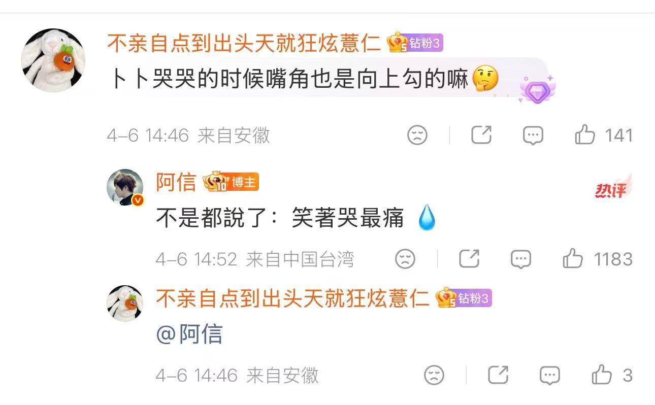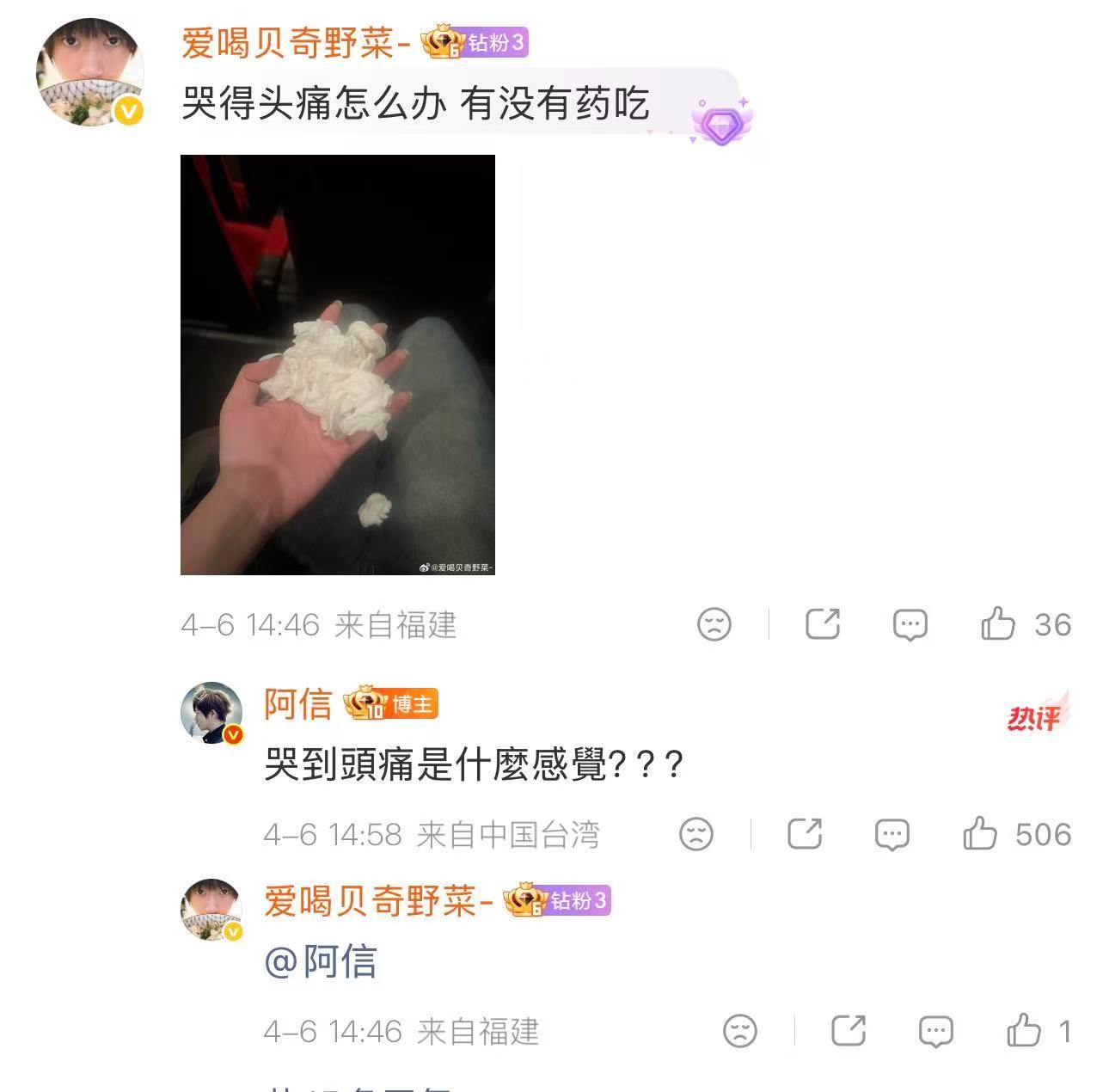 阿信喊话让陈意涵负责阳光女子合唱团阿信:卫生纸被哭没了,陈意涵你负责!我:支持,已哭光三包,速赔!