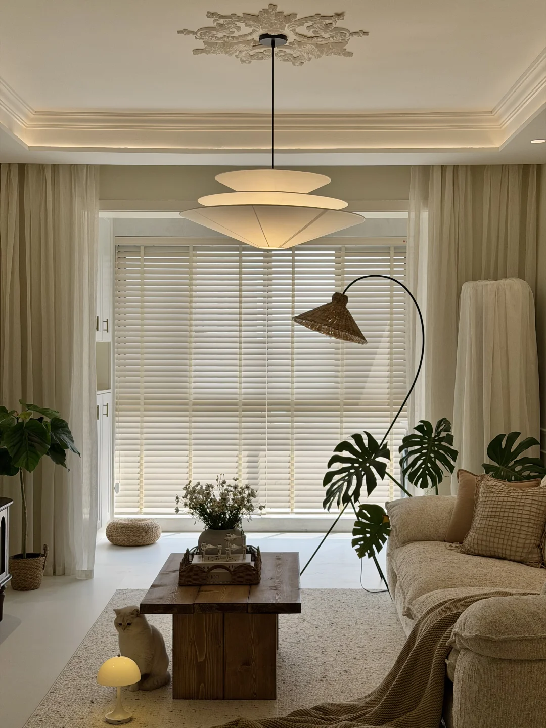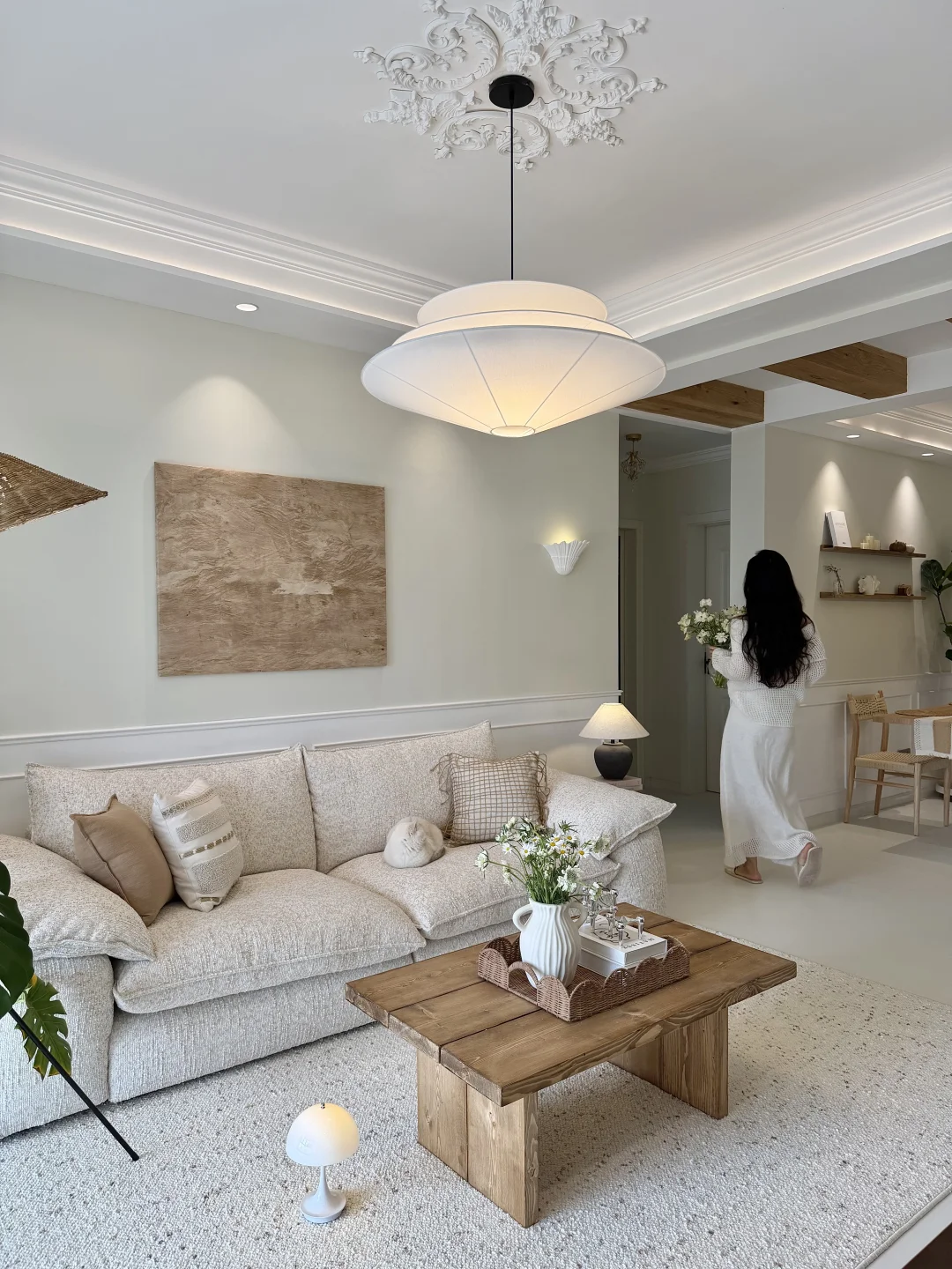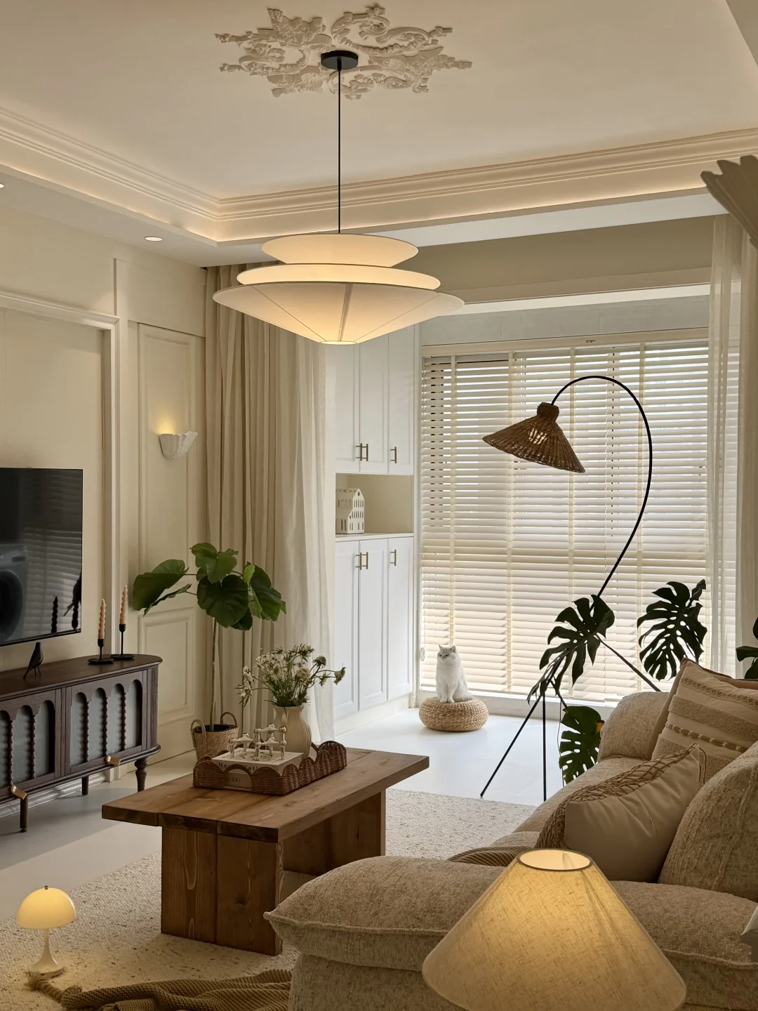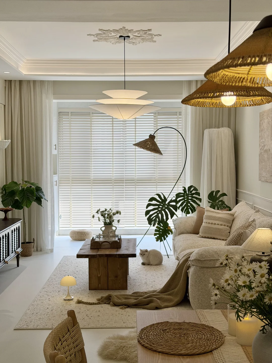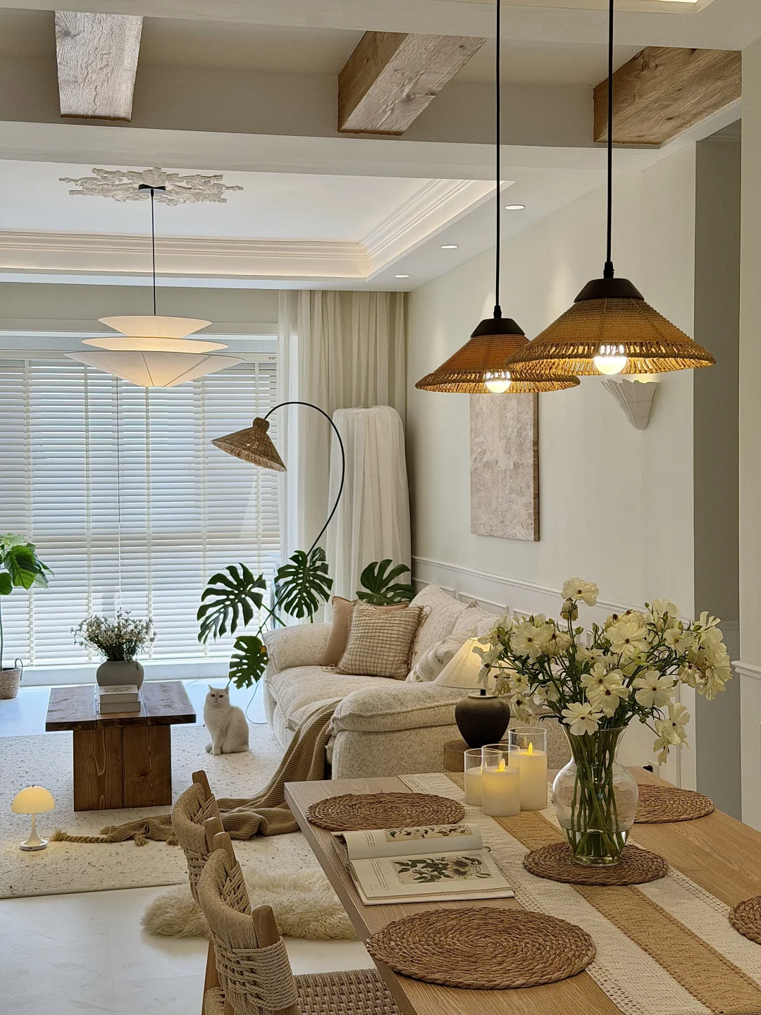 建面98,套内75平,自己设计的法式自然风小家~ 没有复杂的装修,只有原木与奶白的温柔碰撞 下班回家推开门,暖光、花香、软乎乎的小猫 所有疲惫都瞬间消散~ 住进去的每一天,都在被温柔治愈✨