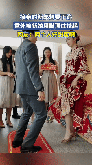 谁懂啊!接亲时新娘的这一脚,直接封神了 接亲现场,本该是新郎单膝下跪献花的浪漫时刻。 新郎满怀深情缓缓俯身,准备下跪表达爱意。 就在此时,身穿秀禾服的新娘俏皮地伸出脚,轻轻一顶,顺势扶起了准备下跪的新郎。 这一动作,打破了传统的拘谨,瞬间让现场充满了轻松与甜蜜。两人相视一笑,紧紧相拥,周围的亲友也被这突如其来的高甜互动逗得开怀大笑。 最好的爱情,大抵就是这样,既有相敬如宾的温柔,也有彼此打趣的鲜活。接婚仪式感 婚礼跪 暖心瞬间