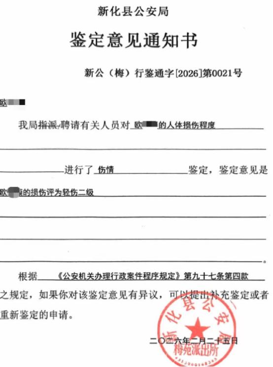 湖南,女子在怀二胎的时候,小其7岁丈夫出轨女同事。女子发现后,将二人举报,因二人都是监狱干警,导致被记大过处分。随后,女子与丈夫协议离婚。谁知,女子前脚离婚,前夫后脚就把女同事娶了回去。女同事还逼着孩子管她叫妈妈,威胁不叫妈妈就不给买玩具。女子得知后,火冒三丈,找上门去,双方发生肢体接触,导致女子5处肋骨骨折,造成轻伤二级。没想到,对方反咬一口:她上门滋事,自己才是受害者。网友:离婚了还纠缠什么? 今年40岁的欧女士是新化县一名个体工商户,开着一家小广告公司,日子过得安稳。 2017年,她认识了比自己小7岁的曾某,相处半年后成婚,婚后不久有了第一个儿子,后来又怀上二胎。本以为一家人会越来越红火,欧女士却在孕期发现,丈夫竟背着自己出轨了女同事肖某——两人都是监狱干警,拿着国家工资,却做着破坏别人家庭的事。 2021年,怀着二胎的欧女士行动不便,对丈夫多了几分包容,可她渐渐发现曾某频繁晚归、手机静音,接电话还躲着她。 凭着直觉,欧女士留了心眼,很快找到了两人出轨的证据。看着刺眼的聊天记录和照片,想到自己怀着他的孩子、全心为家操劳,欧女士实在无法忍受。 愤怒的欧女士没有忍气吞声,直接将证据举报给两人所在的监狱及相关部门。 作为公职人员,婚内出轨既违背公序良俗,也违反单位纪律,相关部门核实后,对曾某和肖某作出记大过处分,处分已归档至公务员管理系统。可曾某不仅毫无悔改,还觉得欧女士太绝情,不顾夫妻情分和未出生的孩子。 感情彻底破裂后,欧女士心灰意冷地提出离婚,曾某也表示同意,两人很快办理了协议离婚。 当时欧女士二胎尚未出生,双方约定两个孩子轮流抚养、一年一换,初衷是不让孩子分开。但实际上,离婚四年间,两个孩子几乎一直由欧女士独自照顾,曾某作为父亲,未尽到多少抚养责任。 让欧女士没想到的是,自己前脚离婚,曾某后脚就娶了肖某,速度之快彻底寒了她的心。欧女士虽心里不舒服,却也想着离婚后曾某有再婚自由,只要他好好对待孩子,自己便不再计较。可肖某嫁过去后,竟做出更过分的事:逼着欧女士的小儿子叫自己妈妈,还用买玩具、带出去玩为诱惑,威胁孩子不叫就什么都不给。 2025年12月7日,欧女士哄小儿子玩耍时,心思单纯的孩子委屈巴巴地说:“妈妈,肖阿姨让我叫她妈妈,我不叫,她就不给我买玩具,也不带我出去玩。” 看着儿子委屈的模样,欧女士怒火中烧——肖某抢走丈夫还不够,竟还用卑劣手段逼迫孩子改口,抢占自己作为母亲的位置。 欧女士并非不讲理,她想着若肖某真心对孩子好,慢慢得到孩子认可,孩子自愿叫妈妈,自己也能接受。可肖某用玩具威胁年幼的孩子,既是对孩子的不尊重,也是对她的挑衅。欧女士越想越气,决心找两人讨个说法。 当天晚上,欧女士压着怒火来到前夫家,开门见山地质问肖某,为何逼迫孩子叫妈妈、欺负小孩子。可曾某和肖某不仅毫无愧疚,还没给她好脸色,一口咬定她上门找茬、无理取闹,指责她离婚后还来纠缠。 本就一肚子火的欧女士被这番指责彻底激怒,积压已久的矛盾瞬间爆发,她和肖某当场大吵起来,情绪越来越激动,说着说着就动起了手。曾某起初站在一旁未阻拦,直到两人打得越来越凶,才赶紧报警。 可等待民警赶来的间隙,几人怒火未消,再次发生肢体冲突。 混乱中,曾某和肖某一起对欧女士动手,欧女士一个女人根本不是对手,很快被打倒在地,疼得呲牙咧嘴、动弹不得,连呼吸都觉得胸口剧痛。 民警赶到后,见欧女士痛苦不堪,立即拨打急救电话,将她送往娄底市中心医院检查。经诊断,欧女士左侧5根肋骨骨折,全身多处软组织挫伤。2026年2月,新化县公安局鉴定其伤情为轻伤二级,3月17日,警方正式立案侦查。 让人意外的是,面对调查,肖某竟反咬一口,声称自己才是受害者,说欧女士故意上门滋事、先动手打她,自己只是正当防卫,还称自己也受了伤并提交了相关证据。曾某则在接受记者采访时,以无法核实身份、需向单位报备为由,婉拒回应此事。 欧女士得知后更是气愤,她表示自己是上门讨要说法,是曾某和肖某先动手,如今对方却倒打一耙。为维护权益,她已向湖南省司法厅及两人所在监狱提交材料,要求单位再次处分曾某和肖某。