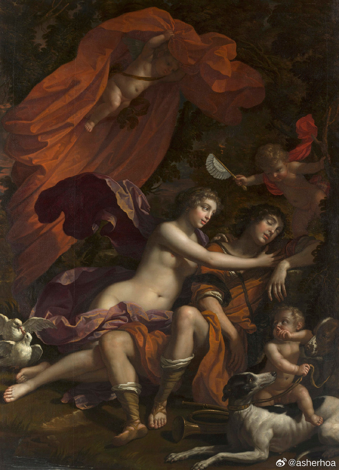 西洋历史文化鱼缸 巴洛克时代意大利画家贝内德托·詹纳里二世(Benedetto Gennari II ,1633–1715)的作品《维纳斯与沉睡的阿多尼斯》。