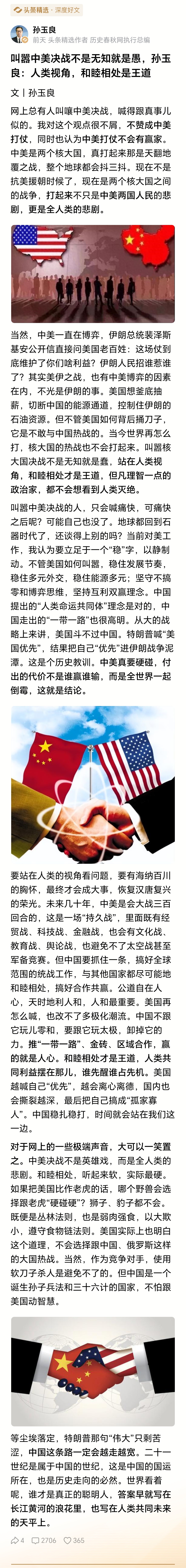孙玉良:叫嚣中美决战不是无知就是愚!