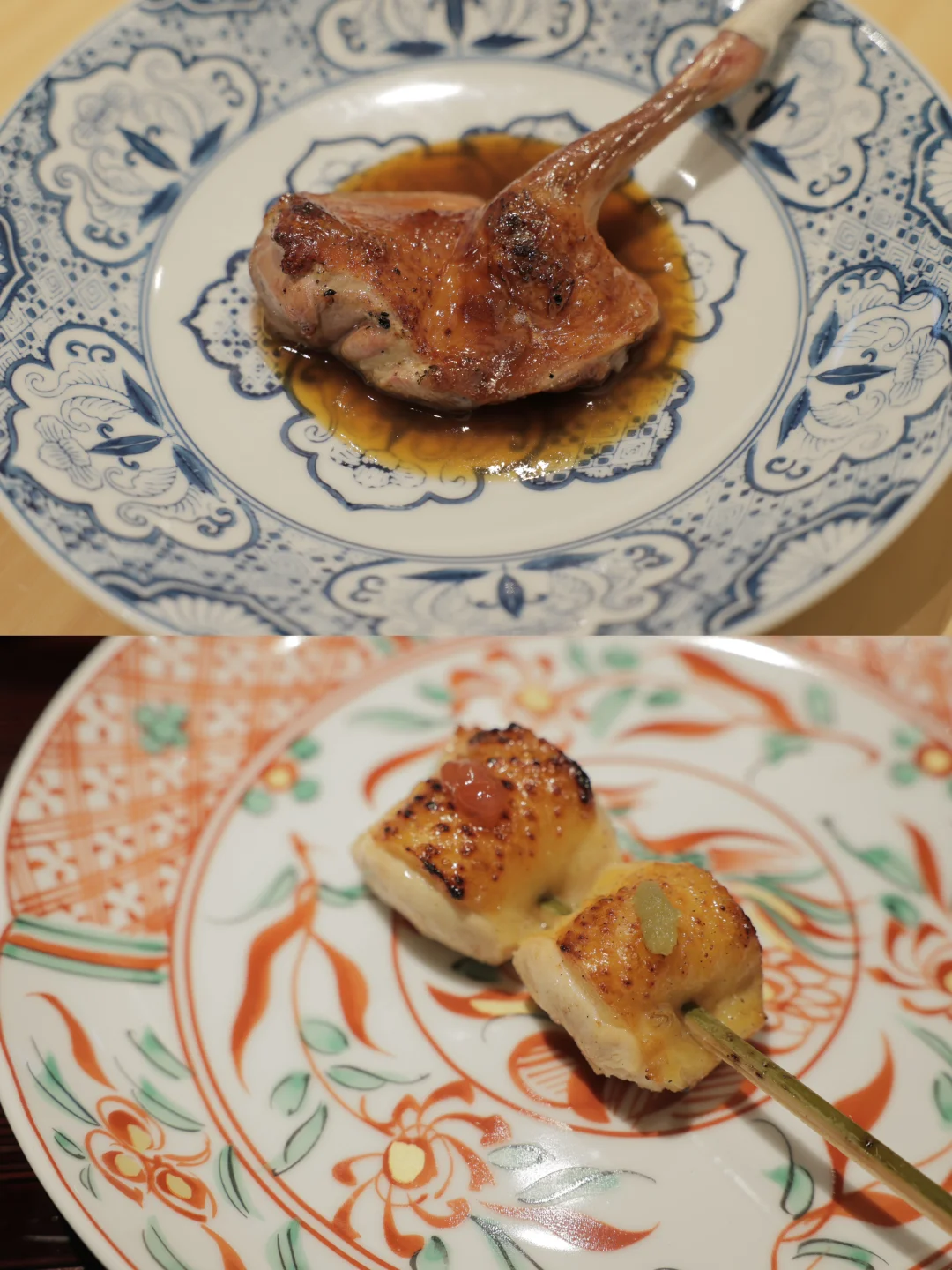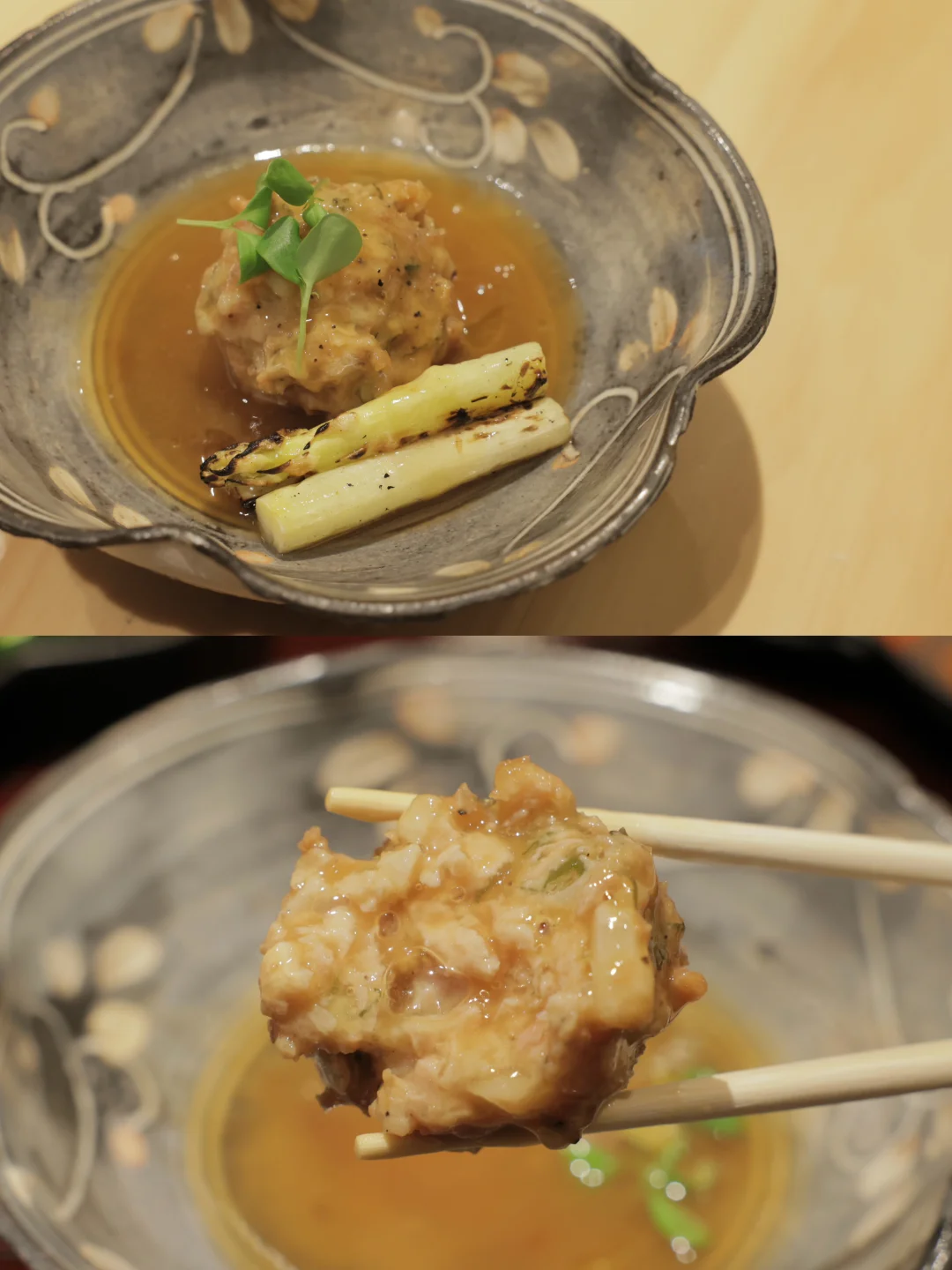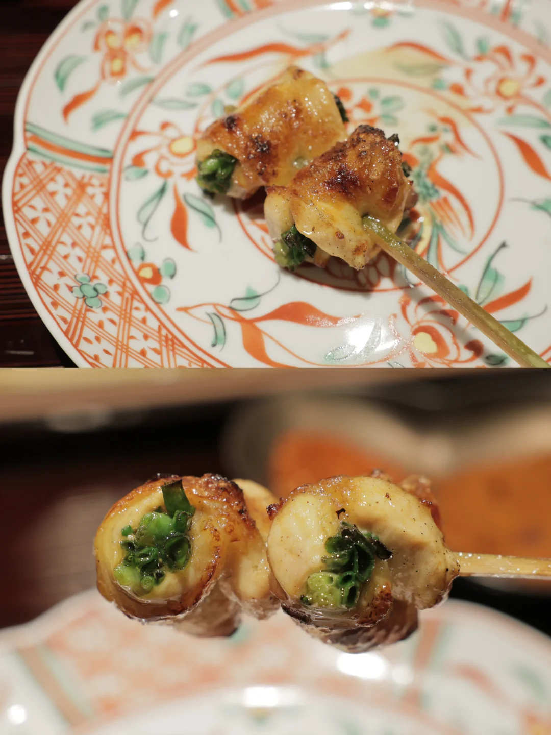 🧾听说换新鸡了,来试试春鸡如何😂 🐔开场部分的鸡肉丸带有一点五指毛桃的香气,很滋润;老演员鸽子腿换了一款更为原汤化原食的肉酱,吃起来更舒服了。 🐔烤串部分,很喜欢中间夹葱的肩胛肉,油滋滋的香气与冒着油的葱香混合在一起,那一口真的爽!其它依旧是让我觉得没有对手的出品,尤其是追加的鸡生蚝! 🥬稍微有点不感冒的是中间包了芦笋的鸡翅,感觉太过于嫩的芦笋把鸡翅那种油脂都吸走了。 🐔另外追加吃到了一串鸡脯肉,说是off menu来的🫨吃起来更像是肉质紧实的鸡胸肉。
