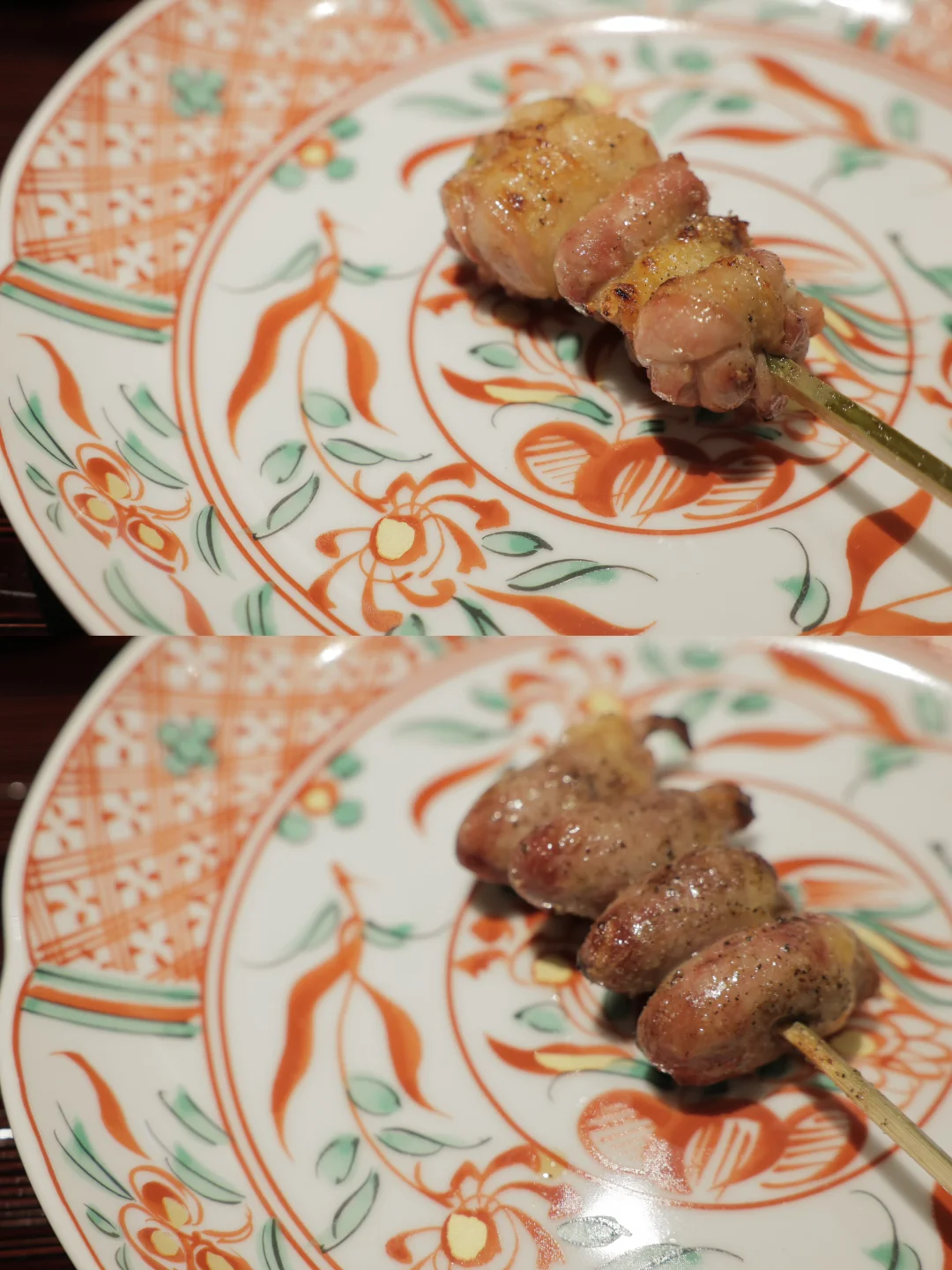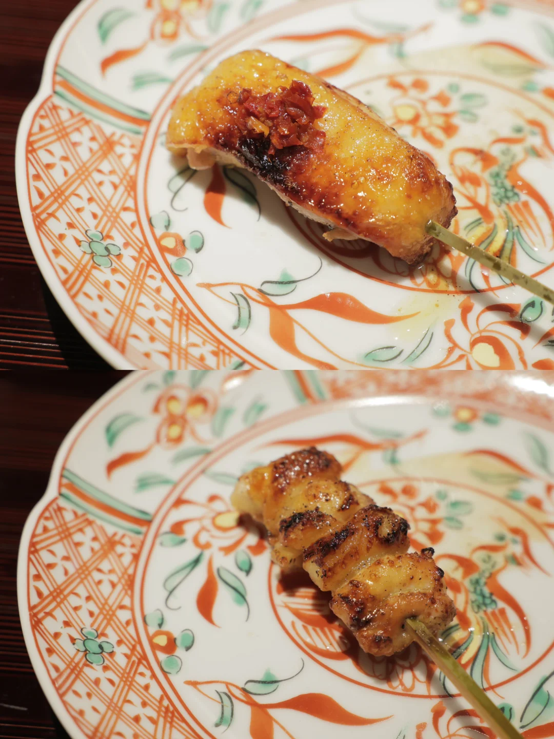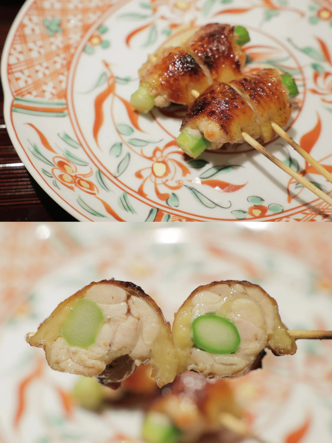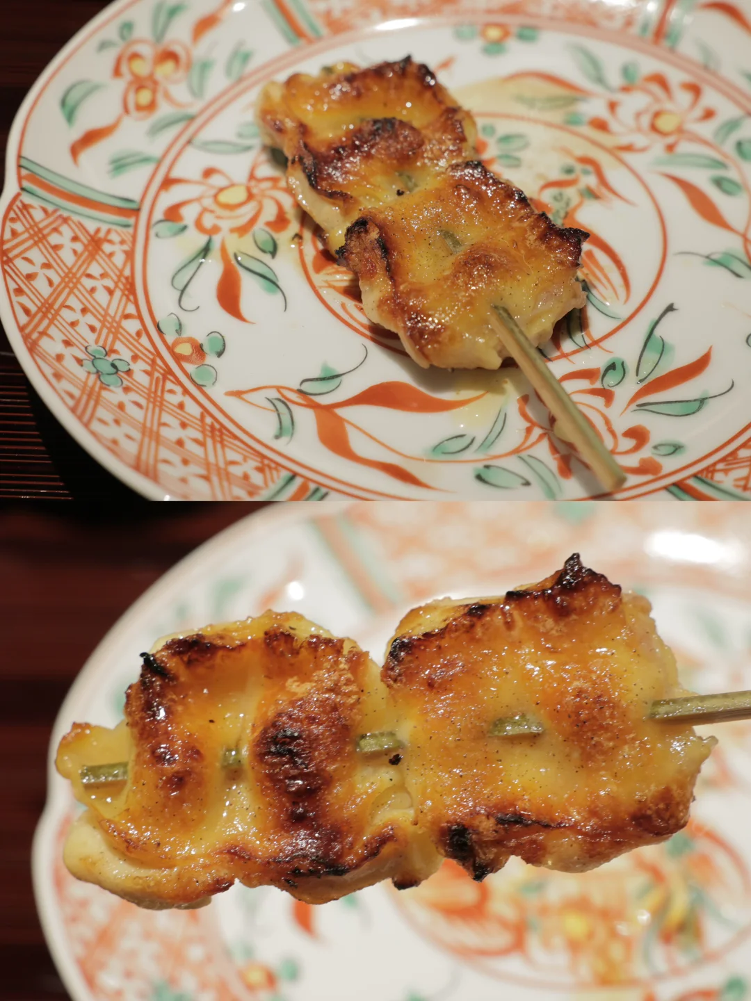 🧾听说换新鸡了,来试试春鸡如何😂 🐔开场部分的鸡肉丸带有一点五指毛桃的香气,很滋润;老演员鸽子腿换了一款更为原汤化原食的肉酱,吃起来更舒服了。 🐔烤串部分,很喜欢中间夹葱的肩胛肉,油滋滋的香气与冒着油的葱香混合在一起,那一口真的爽!其它依旧是让我觉得没有对手的出品,尤其是追加的鸡生蚝! 🥬稍微有点不感冒的是中间包了芦笋的鸡翅,感觉太过于嫩的芦笋把鸡翅那种油脂都吸走了。 🐔另外追加吃到了一串鸡脯肉,说是off menu来的🫨吃起来更像是肉质紧实的鸡胸肉。