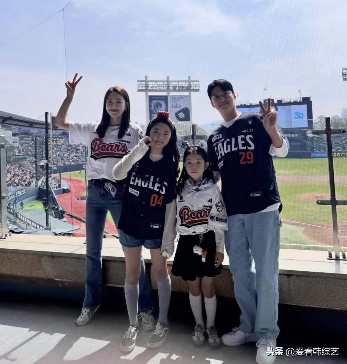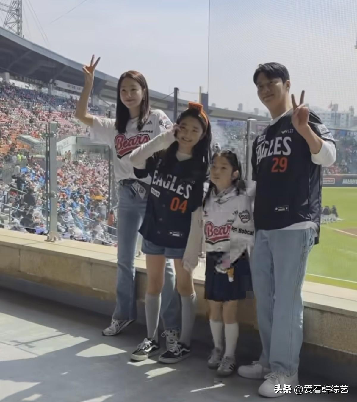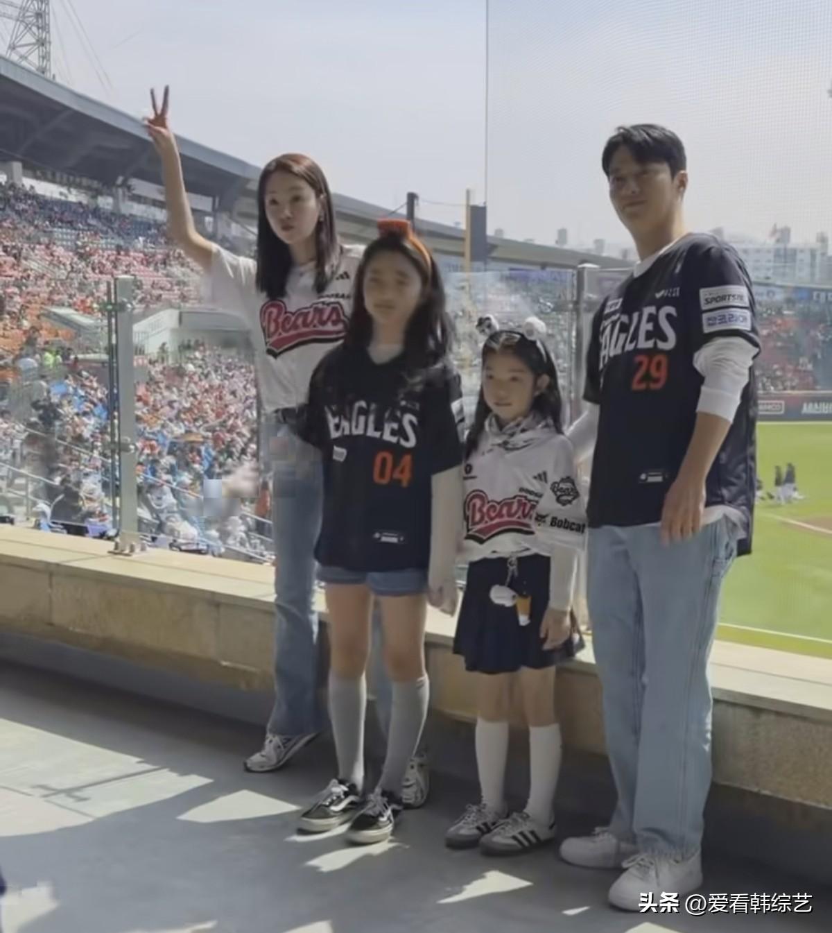 5日,演员苏怡贤在自己的Instagram上发布了多张照片。公开的照片中,苏怡贤和丈夫印乔镇带着两个女儿来到棒球场,一家四口依偎在一起,笑意融融的模样格外温馨。夫妻俩并肩坐着,加油的样子却反差明显:系着斗山围巾的苏怡贤,正使劲挥着双手,高声为球队呐喊,热情十足。 粉丝们纷纷留言“怡贤欧尼今天好漂亮!”、“一家人真幸福!”等等。