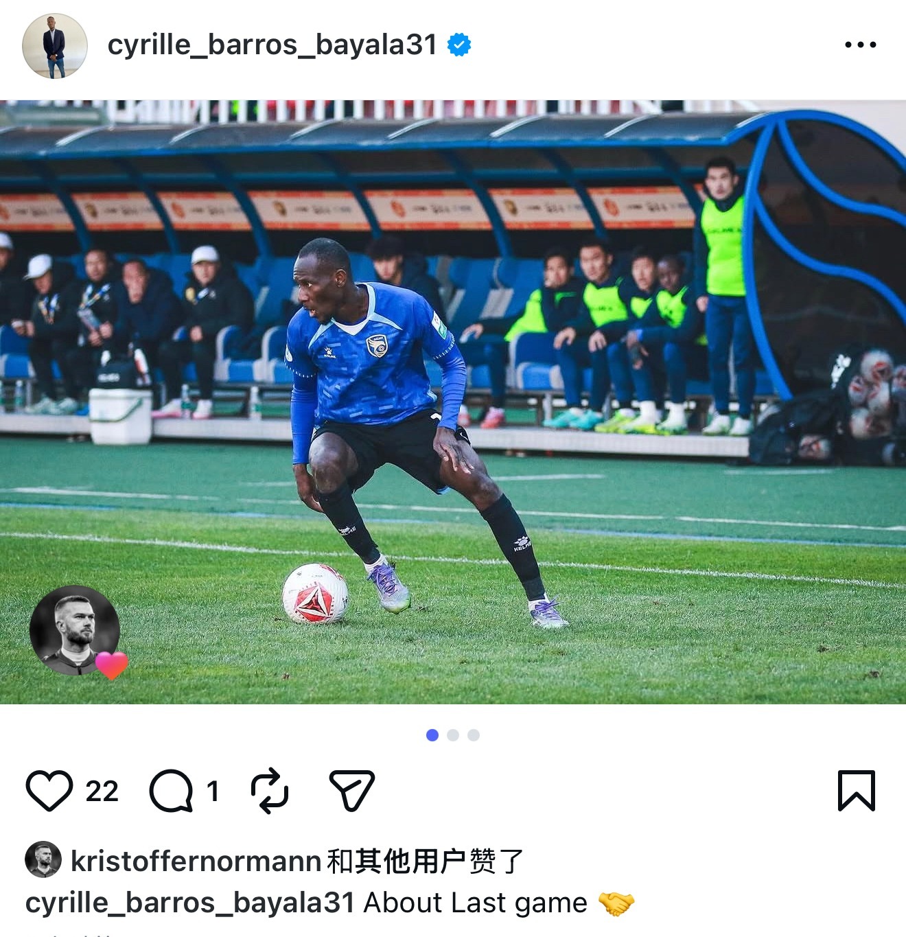 大连鲲城中甲联赛 巴亚拉赛后社交动态 大连