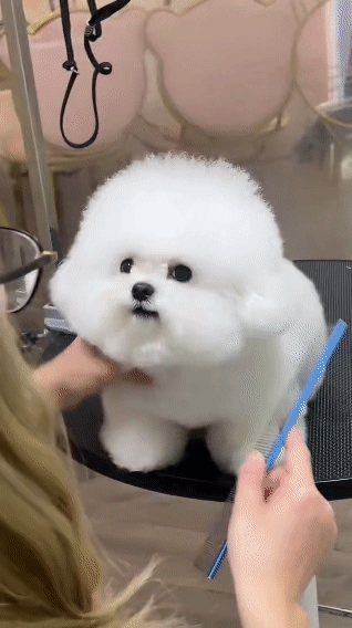 救命!这哪是修毛,分明是给我修了颗棉花糖! 谁懂啊!美容台上的小比熊乖乖坐着,圆滚滚的脑袋像刚揉好的白面团,梳子一梳,毛都蓬成云朵啦。 小嘴巴张着,圆眼睛亮晶晶地望着美容师,连呼吸都软乎乎的,整个过程乖得像个会动的小糯米团子,心都被这软萌的小家伙融化了。 看完以后,好想养一只怎么办[捂脸]比熊棉花糖狗狗 狗比熊犬 萌宠比熊糖宝 比熊鉴别