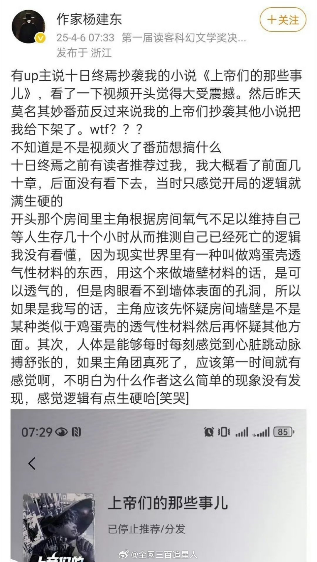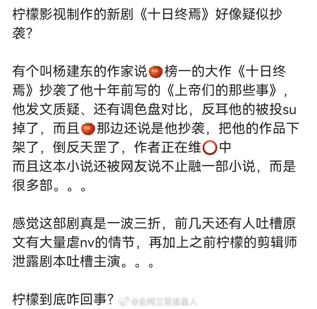 🚾刷到十日终焉疑似抄袭了《上帝们的那些事》,然后捏这位老师反被说抄袭直接下架掉了他的作品,好离谱的操作😦