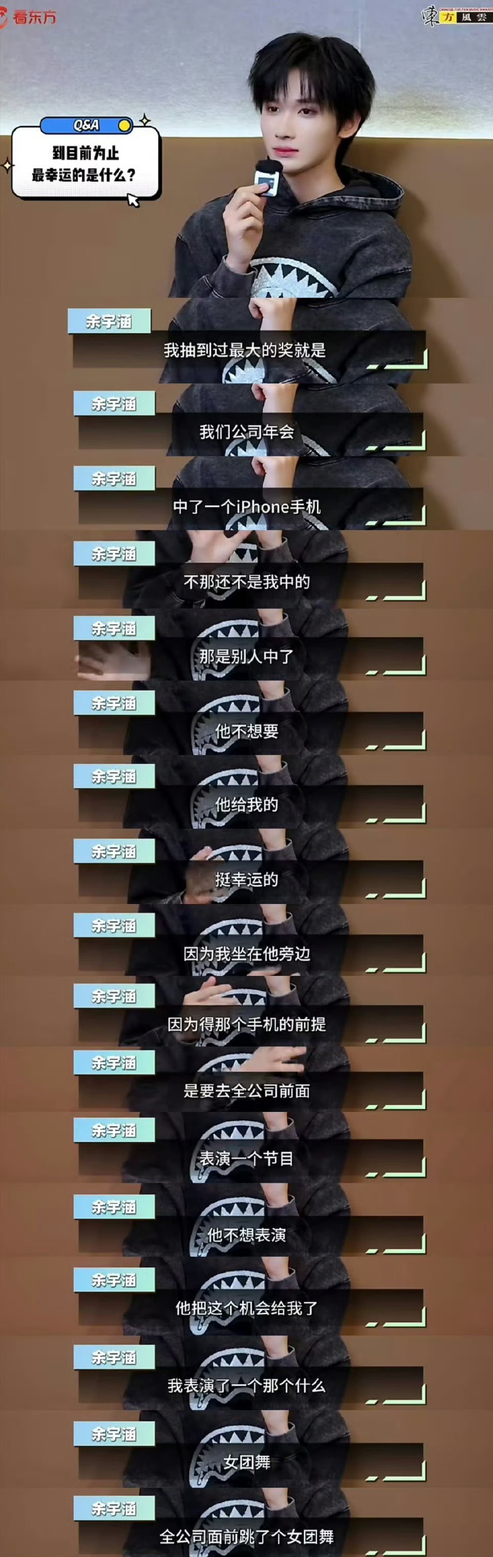 余宇涵公司年会中了一等奖连麦直播被问幸福时刻,余宇涵脱口而出年会中一等奖红包✨ 简单又真诚,少年的快乐好纯粹,开年锦鲤附体,快来接住这份好运!我们的爸爸