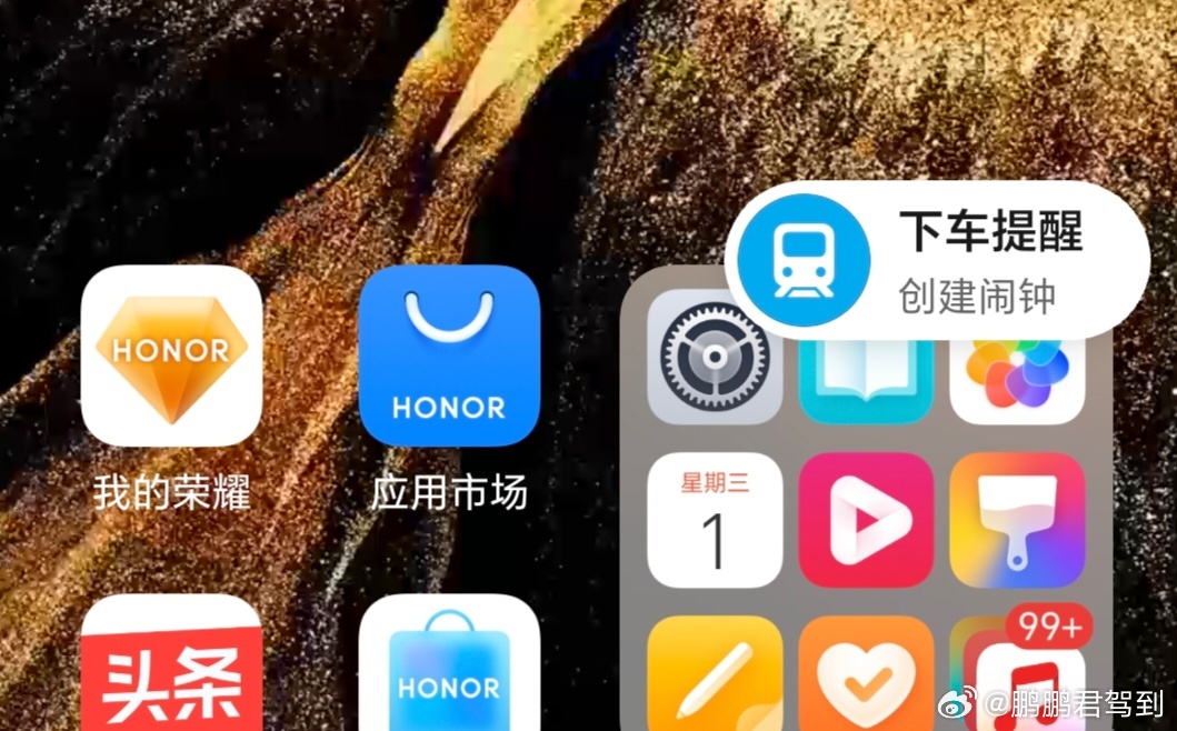 二是必须表扬荣耀的YOYO,在高铁火车行程的建议卡片会自动出现“到站闹钟”功能,因为出差或者出游很可能在高铁上睡觉休息。系统自动拿到高铁到站时间,然后有一个快捷设置到站前十几分钟的闹钟的功能,可以说是相当贴心。华为的小艺从去年国庆反馈到现在,也没有加入这个功能。
