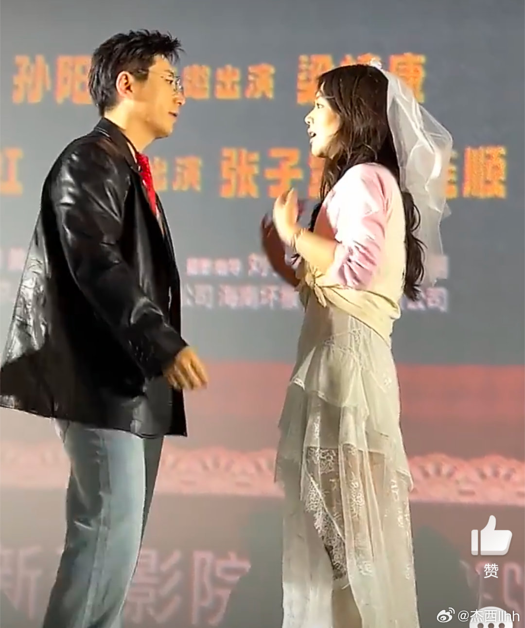 马思纯白客路演现场发喜糖 路演太会玩!马思纯戴头纱、白客变新郎,儿子黄明昊送花祝福。喜糖从银幕甜到座位,这份好运我先接为敬,电影《我的妈耶》热映中