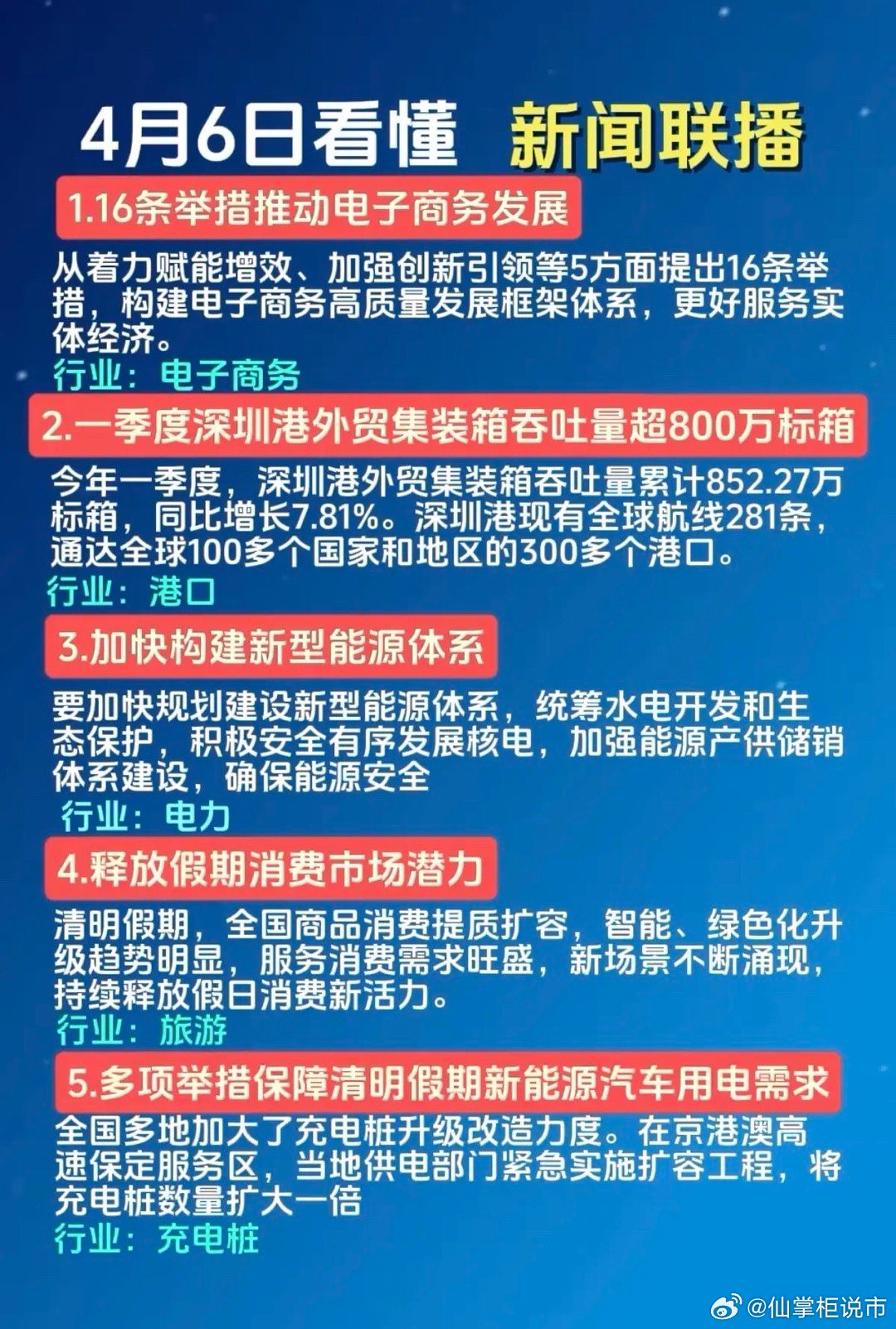 4.6周一晚间新闻联播里的投资机会!1.电子商务,跨境支付2.航运港口3