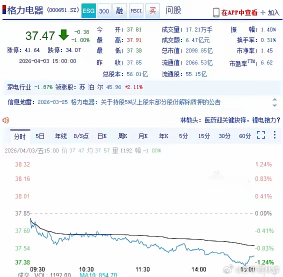 这家企业唯一不足的是负债率多,但分红不错,各有利弊吧,只要平衡,企业就不会止步不前。格力电器是老牌子,家喻户晓,所以它有品牌效应,有品牌效应就会有一定的市场份额。要往长远来看,才能看出企业的前行动力有没有产生效果,从而市场会重新审视对这只股票的价值,股价也会重新调整。