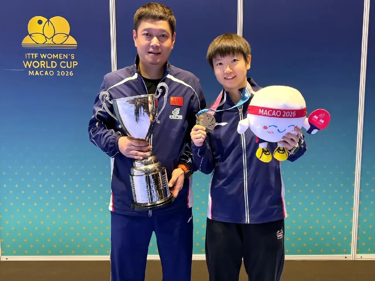 作为莎莎的主管教练,莎莎取得今天的成绩,世乒赛2冠加世界杯3冠,邱贻可绝对功不可没,希望你们未来一起取得更好的成绩!