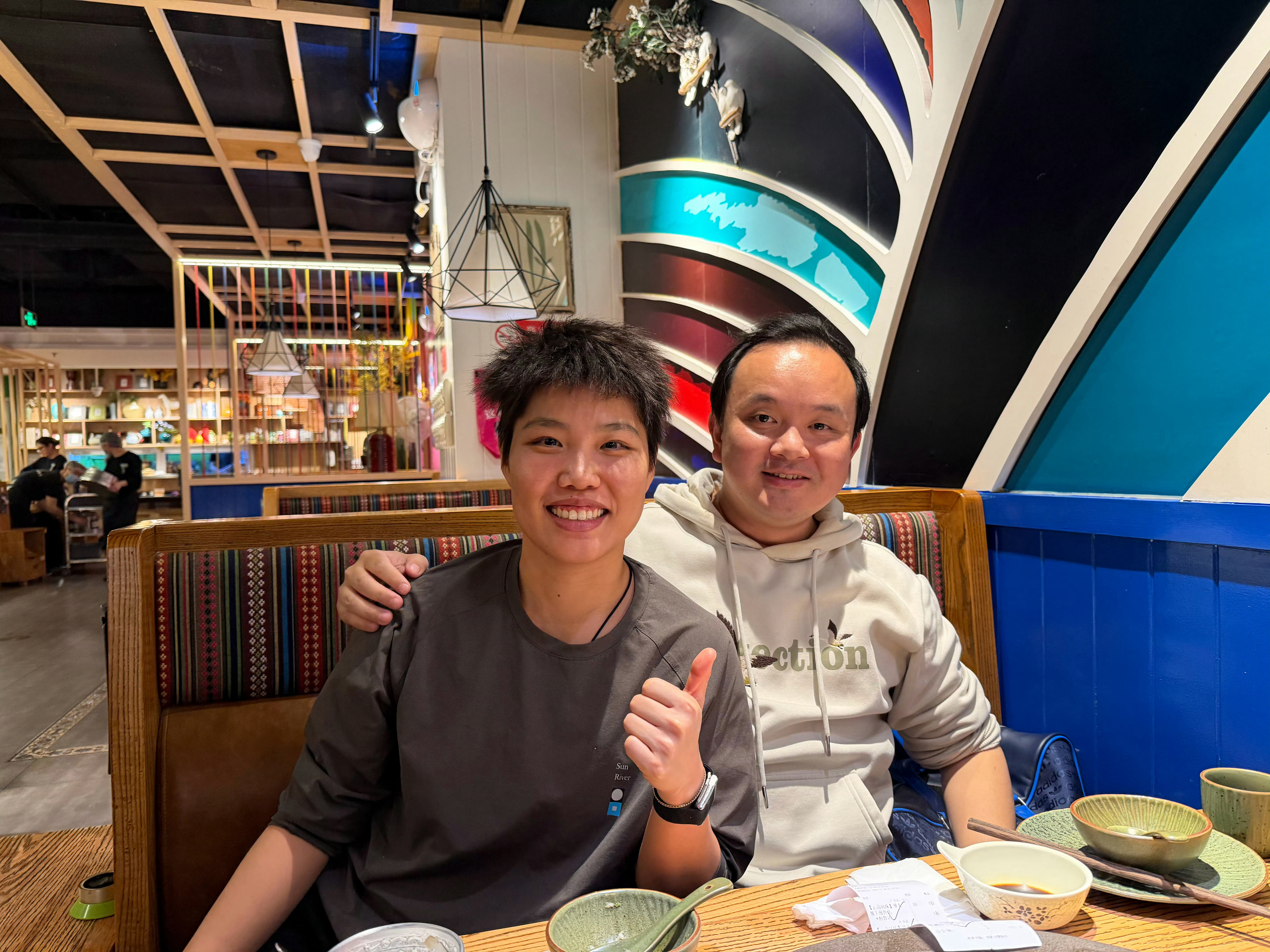 海南偶遇陈梦母女,陈梦和她妈妈长得好像,尤其是那眼神