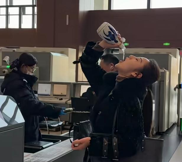 既然不让带进站,那就喝了它。 真是酒中女豪杰,一瓶喝完,气也不喘一口。