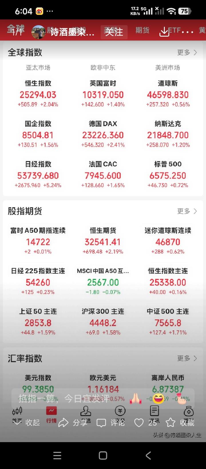 今天,A股有望上涨。 一是伊以美军事冲突有望停火。这对国际来说,都是一个好消息。 二是,4月7日,美股三大指数集体收涨,纳指涨0.54%,标普500指数涨0.44%,道指涨0.36%。 这对中国股市又是一个好消息。 但愿4月份,A股能突破今年的高点,再创新高,给股民一个实实在在的大红包!