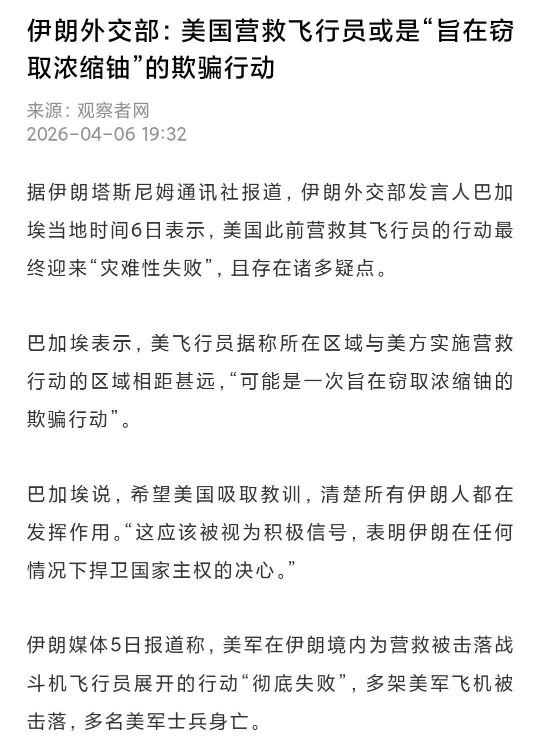 这事应该是宣传漏了,强行掩盖抢浓缩铀行动的失败。现在是全民吃瓜时代,宣传太假不好。