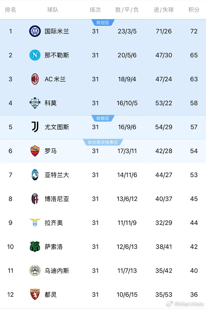 一觉醒来,感叹昨天看完半场就睡觉还是很果断的,下半场你妇也稳住了,现在缩小了和科莫的差距到1.5分,接下来三场亚特兰大、博洛尼亚和米兰场场6分战。
