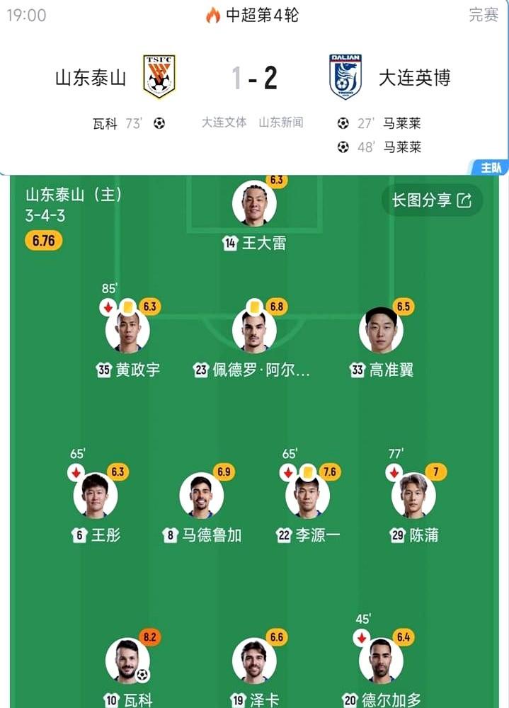 泰山队的主场金身彻底破了,还是输给了一个升班马。 没了克雷桑的泰山队像丢了魂。德尔加多首发几乎隐身,大连队的马莱莱抓住防线漏洞梅开二度,直接把济南奥体踢安静了。韩鹏在场边看着防线两场狂丢6球,确实没啥好办法。 瓦科那个外脚背进球挺漂亮,可惜救不了火。宿茂臻赛后向球迷道歉,承认球队落后了就没进攻思路。现在克雷桑膝盖伤情挺重,后面比赛更难打。 两连败加积分挂零,大家觉得这球还有救吗?