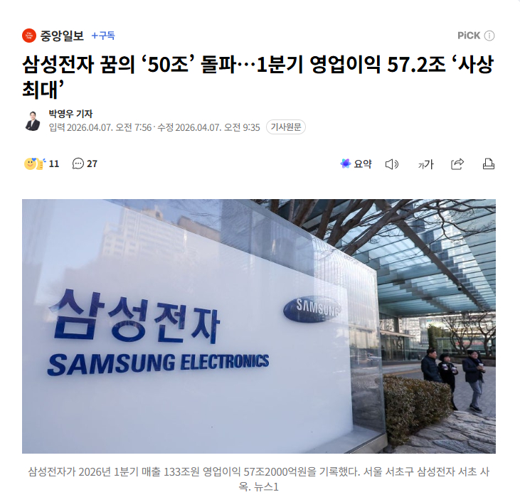 【韩国三星电子第一季度营业利润达57.2万亿韩元,创历史新高】海外新鲜事热点现场