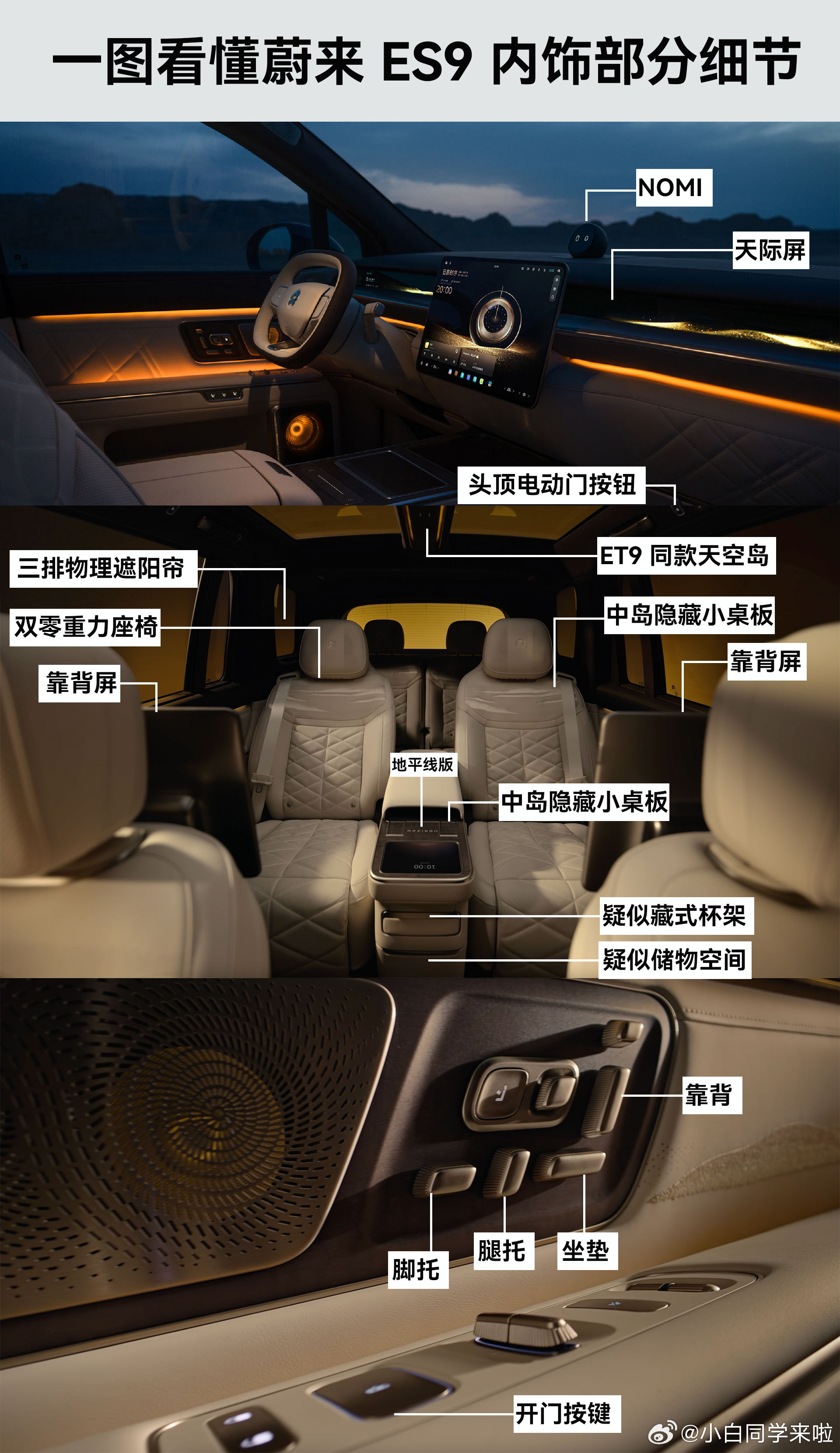 不泄密的情况下带大家看看蔚来 ES9 的内饰部分细节。