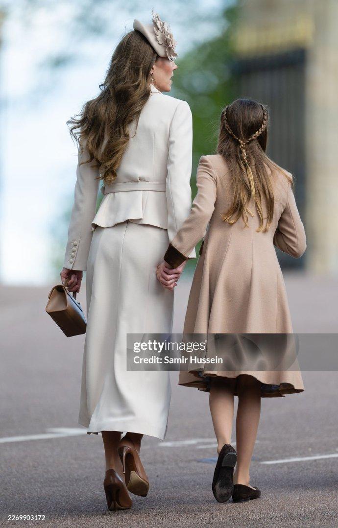夏洛特公主又陪着王室大家庭一起出席一年一度的复活节教堂活动了。 离开时,依旧是妈妈凯特王妃牵着女儿夏洛特公主。 同样的背影照,夏洛特公主长高了好多,越发的优雅,越发的亭亭玉立,也越发的有公主范儿。 不变的是夏洛特始终没有改变的辫子半扎公主头,而对比之下,越来越高挑的女儿夏洛特公主,也明显衬托出了凯特王妃越来越纤瘦的身材。 凯特这位王储妃始终优雅,也始终笑容灿烂,但是纸片一般的身材,愈发的苍老了好多。