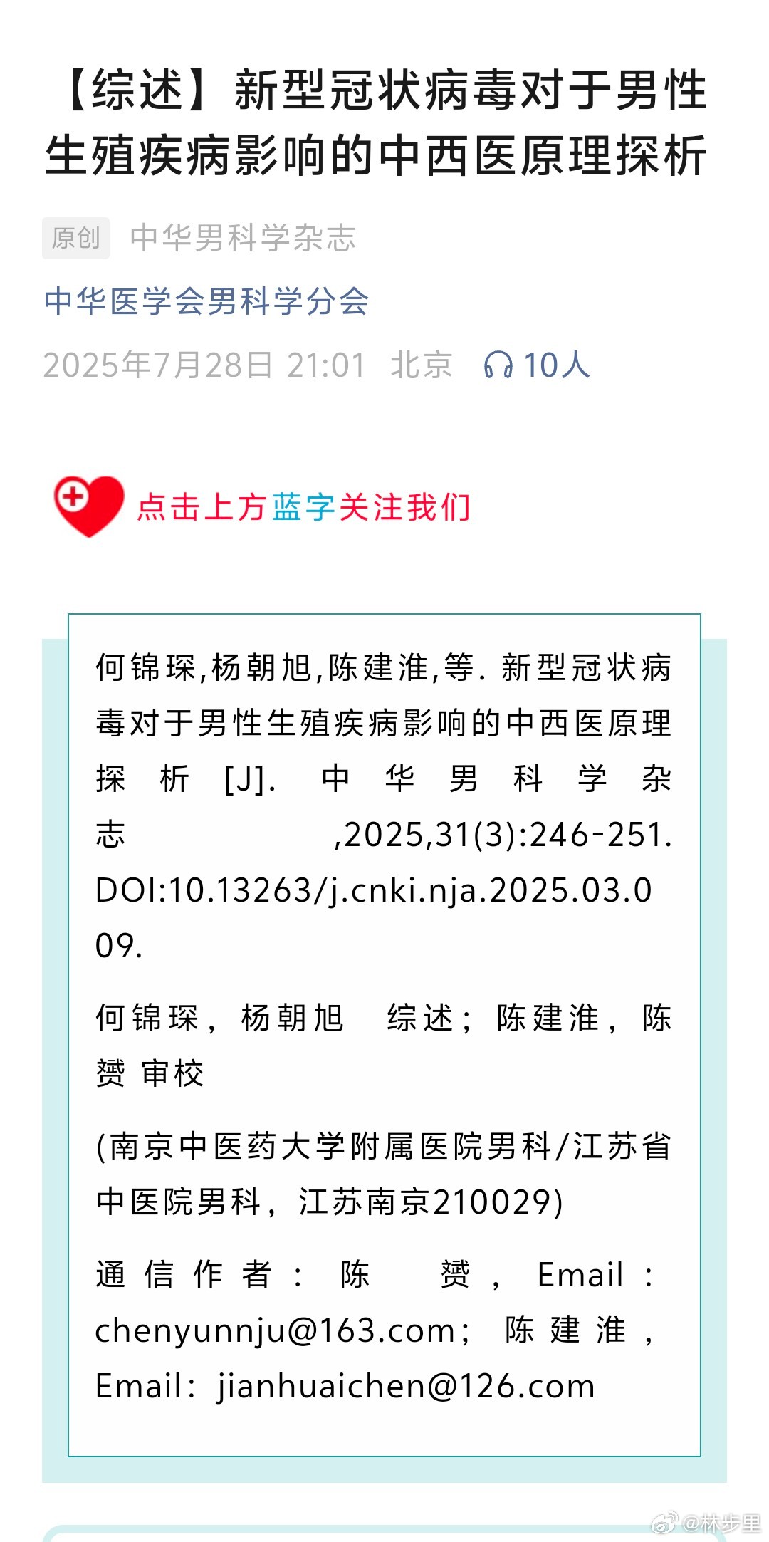 《中华男科学杂志》的这篇,把新冠对男性的生殖影响,写的明明白白的。