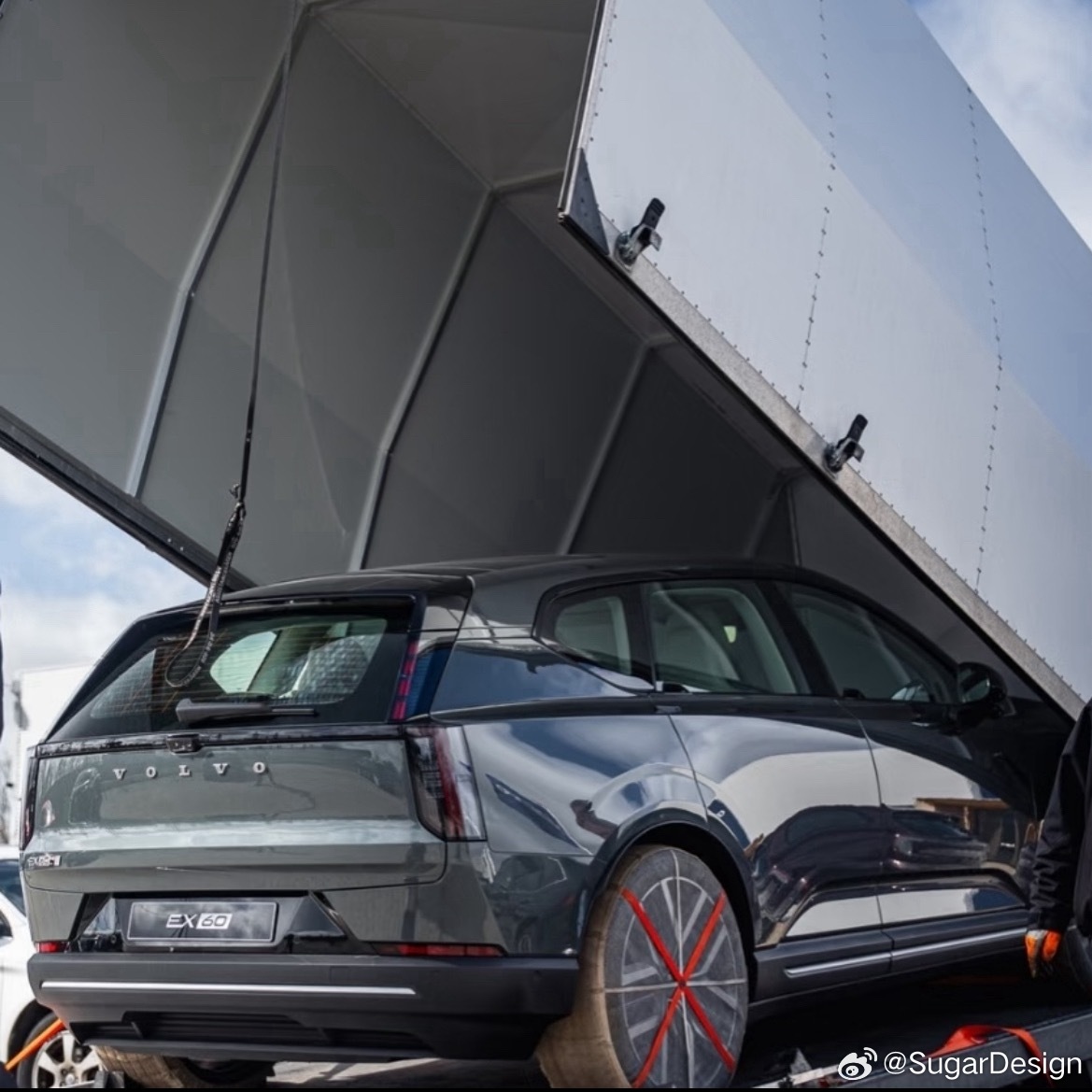 沃尔沃EX60实拍图印象里这应该是第一次实车露出吧 小耳朵门把手已经用上了,宝马X5以后也会用类似的小耳朵