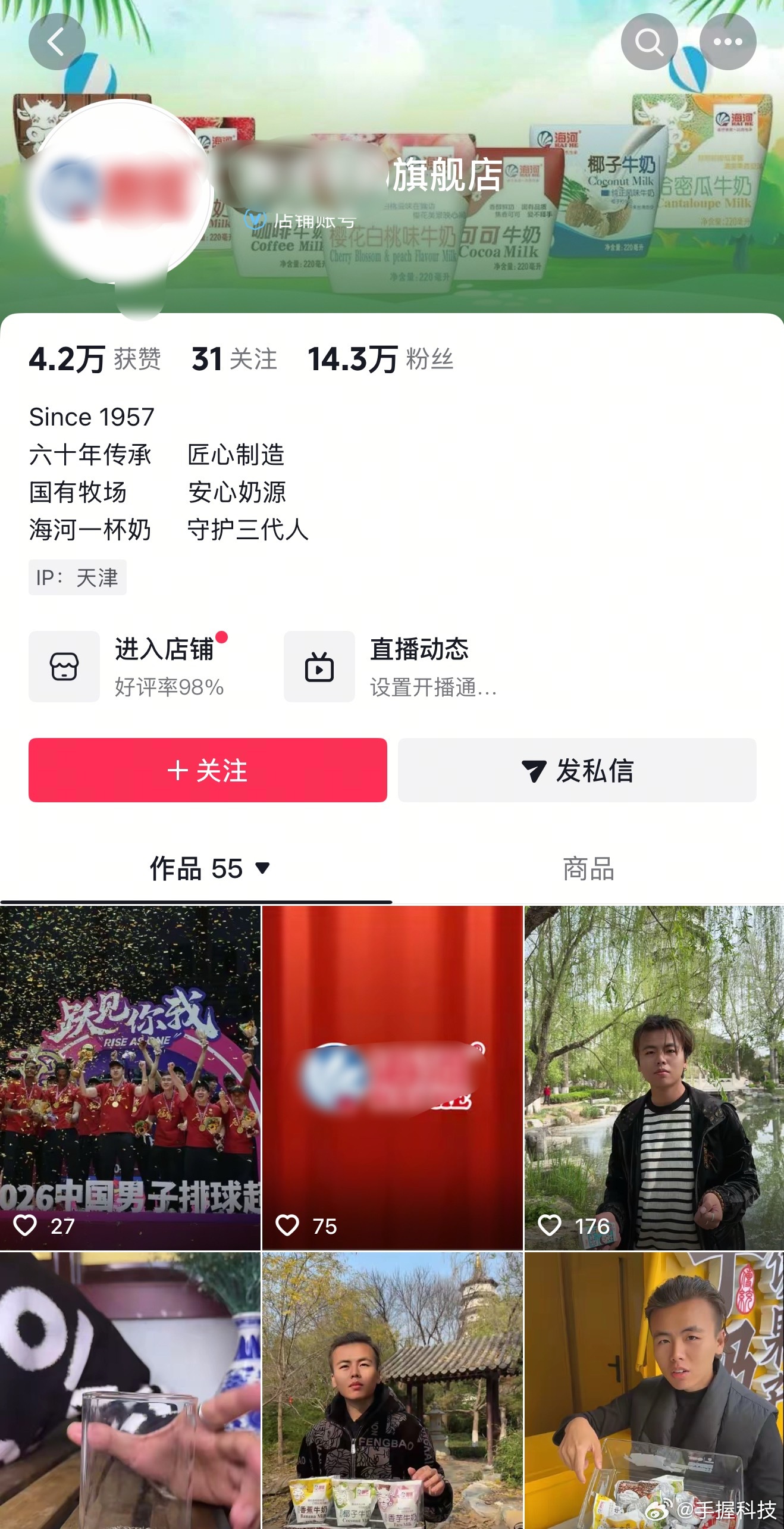 曝某牛奶直播间涉黄涉低俗搜到一个也是挂着XX牛奶的号,时间在去年底,标题说号fe